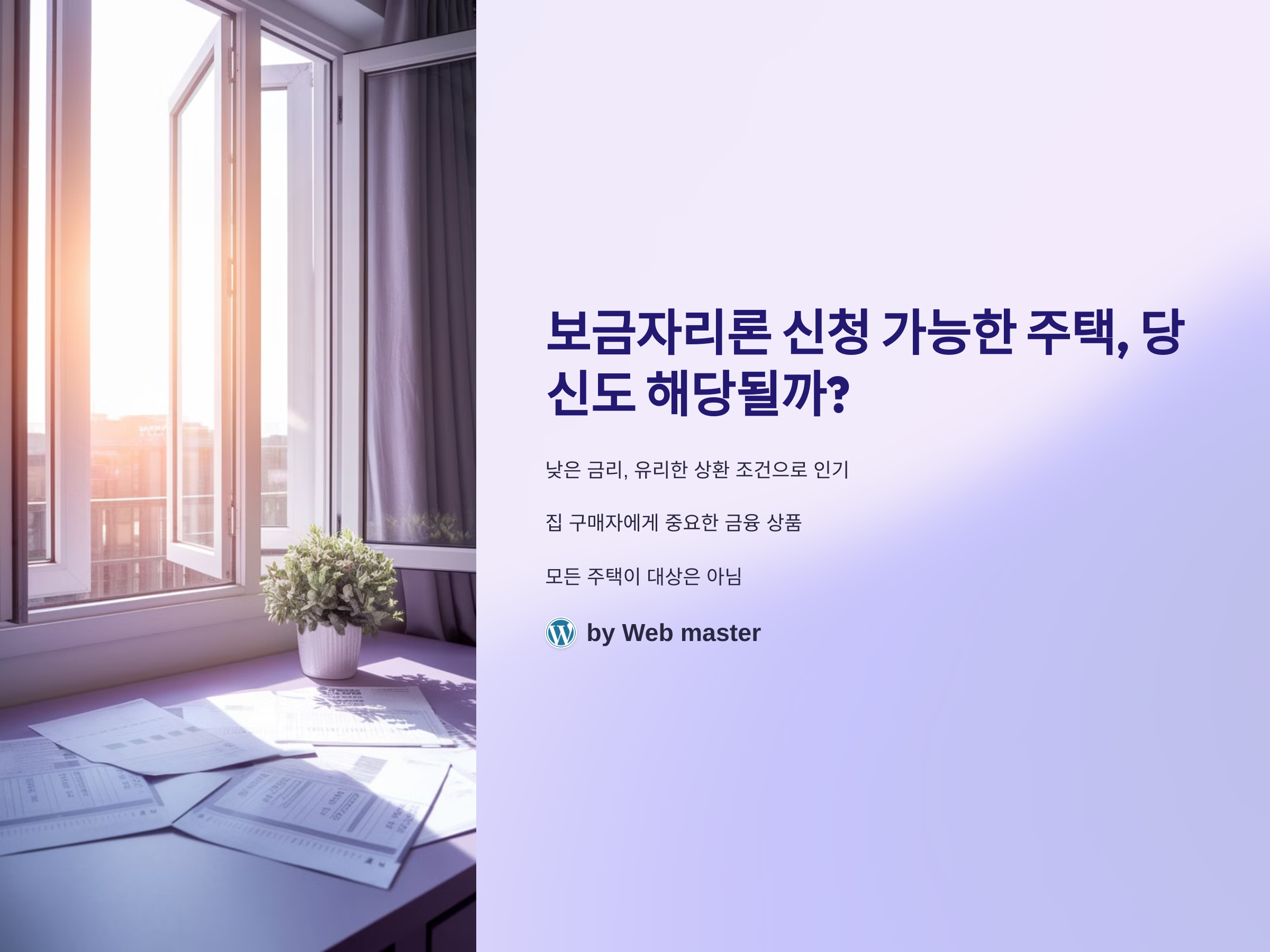 보금자리론은 대한민국에서 집을 구입하고자 하는 사람들에게 매우 중요한 대출 상품 중 하나입니다. 주택 구입을 위한 자금을 지원해주는 이 보금자리론은 조건을 잘 알고 있다면, 더 좋은 기회를 제공받을 수 있습니다. 특히, 보금자리론은 대출 금리가 낮고, 상환 조건이 유리하여 많은 사람들에게 관심을 끌고 있습니다. 하지만 보금자리론이 신청 가능한 주택은 무엇일까요? 어떤 주택이라면 보금자리론의 혜택을 받을 수 있는지 구체적으로 알아보겠습니다. 여러분이 집을 구매하려는 사람이라면, 이 정보를 반드시 알고 있어야 합니다.