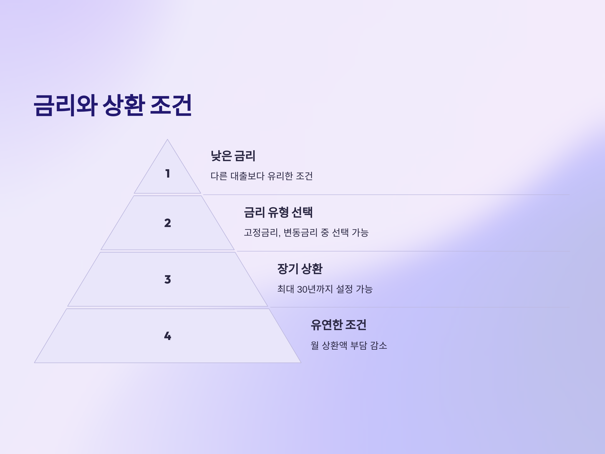 보금자리론의 가장 큰 장점은 낮은 금리입니다. 대출금리가 다른 대출 상품에 비해 상대적으로 낮아, 상환 부담을 줄일 수 있습니다. 보금자리론의 금리는 고정금리와 변동금리 두 가지 형태로 제공되며, 각자의 상황에 맞는 금리 유형을 선택할 수 있습니다.