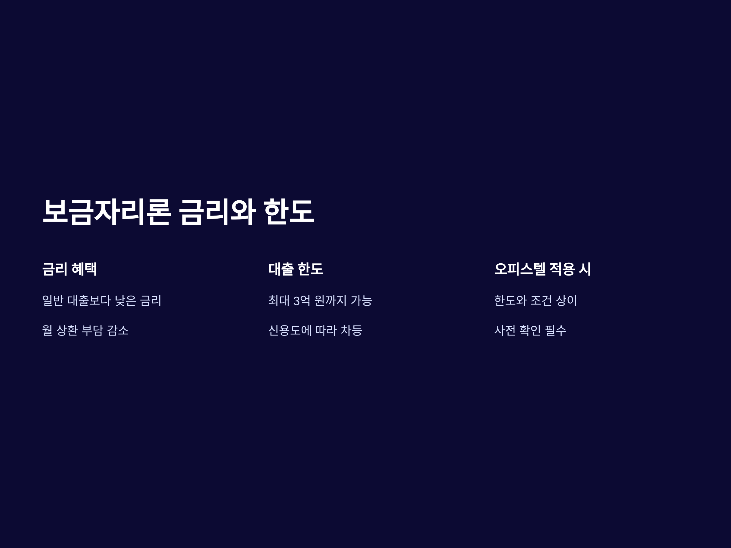 보금자리론의 금리는 매우 중요한 요소입니다. 보금자리론을 통해 대출을 받으면, 일반적인 대출에 비해 상대적으로 낮은 금리로 대출을 받을 수 있습니다. 이로 인해, 월 상환 금액이 적어져 장기적으로 경제적 부담을 덜 수 있습니다. 그러나 오피스텔의 경우, 보금자리론을 이용할 수 없기 때문에 다른 대출 상품의 금리와 조건을 비교하는 것이 중요합니다.