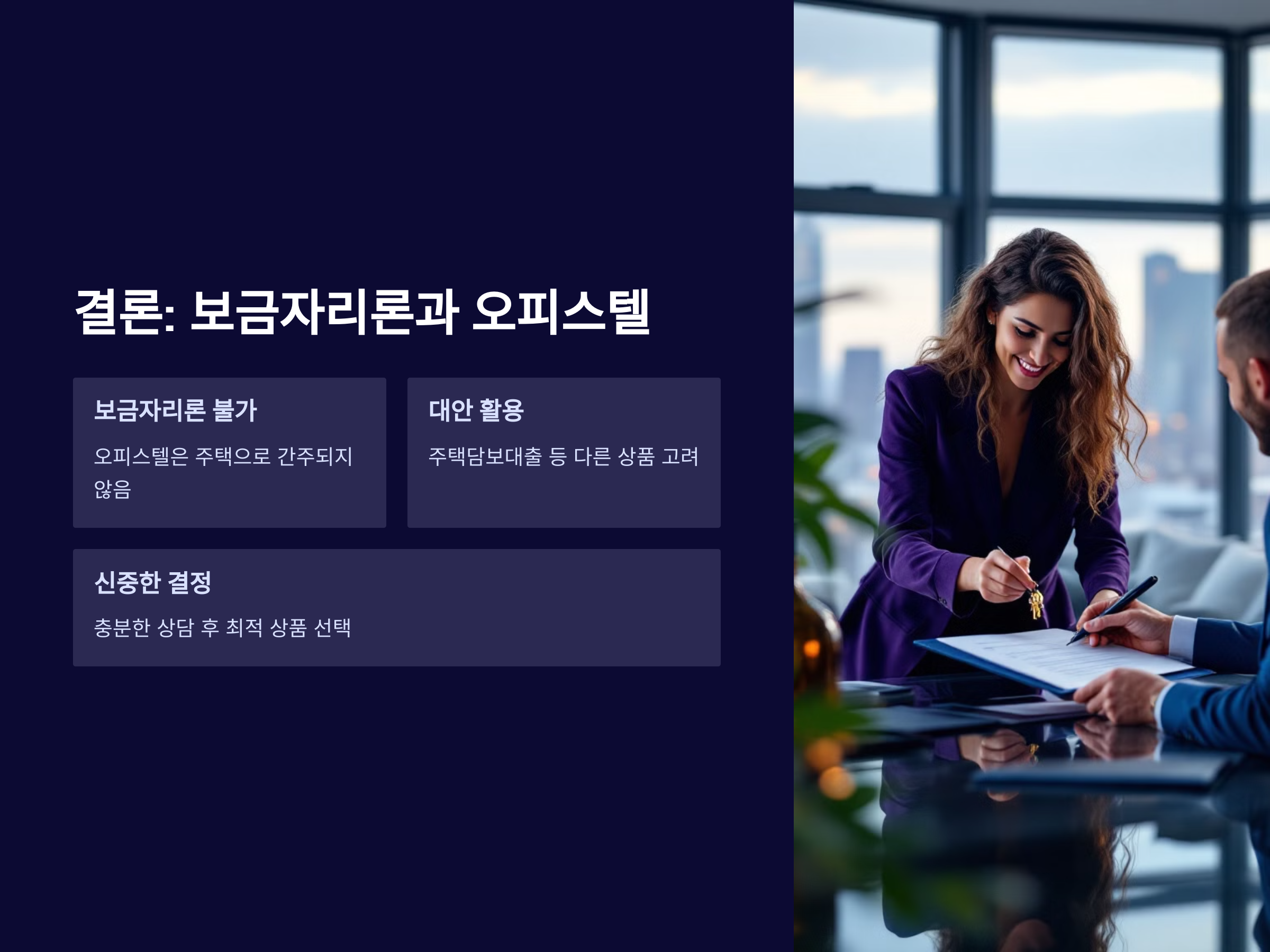 오피스텔은 주거용으로 사용하더라도 주택으로 간주되지 않기 때문에, 대출을 받기 전에 충분히 상담을 받고, 자신의 상황에 맞는 대출 상품을 선택하는 것이 중요합니다.