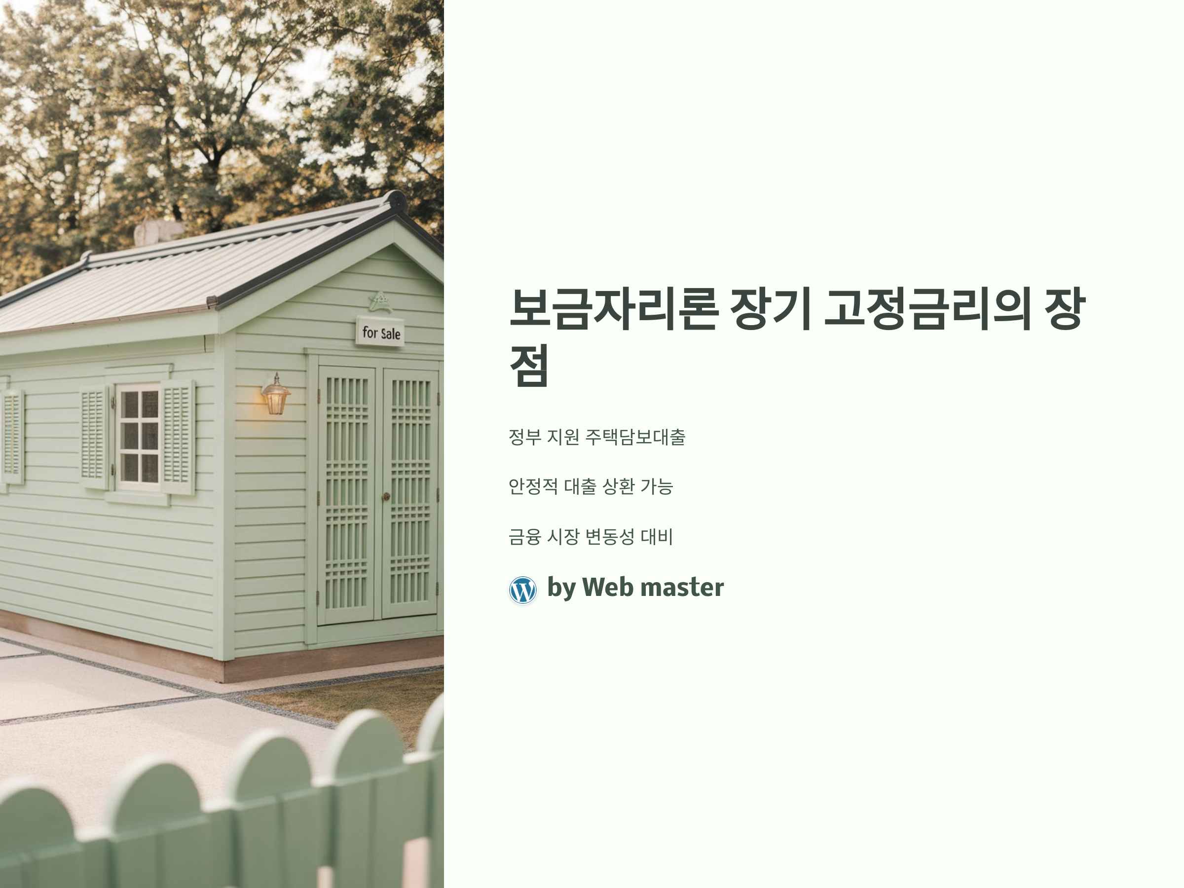 보금자리론의 장기 고정금리는 금리 변동에 대한 불안 없이, 안정적이고 예측 가능한 상환 계획을 세울 수 있다는 큰 장점이 있습니다. 장기적으로 주택 대출을 상환할 때, 고정금리를 선택하면 금리 인상에 대한 걱정 없이 계획적인 재정 관리를 할 수 있습니다. 물론, 금리가 변동할 가능성이 낮은 경우 변동금리가 유리할 수도 있지만, 장기적으로 안정성을 중시한다면 고정금리가 더 많은 이점을 제공합니다.
