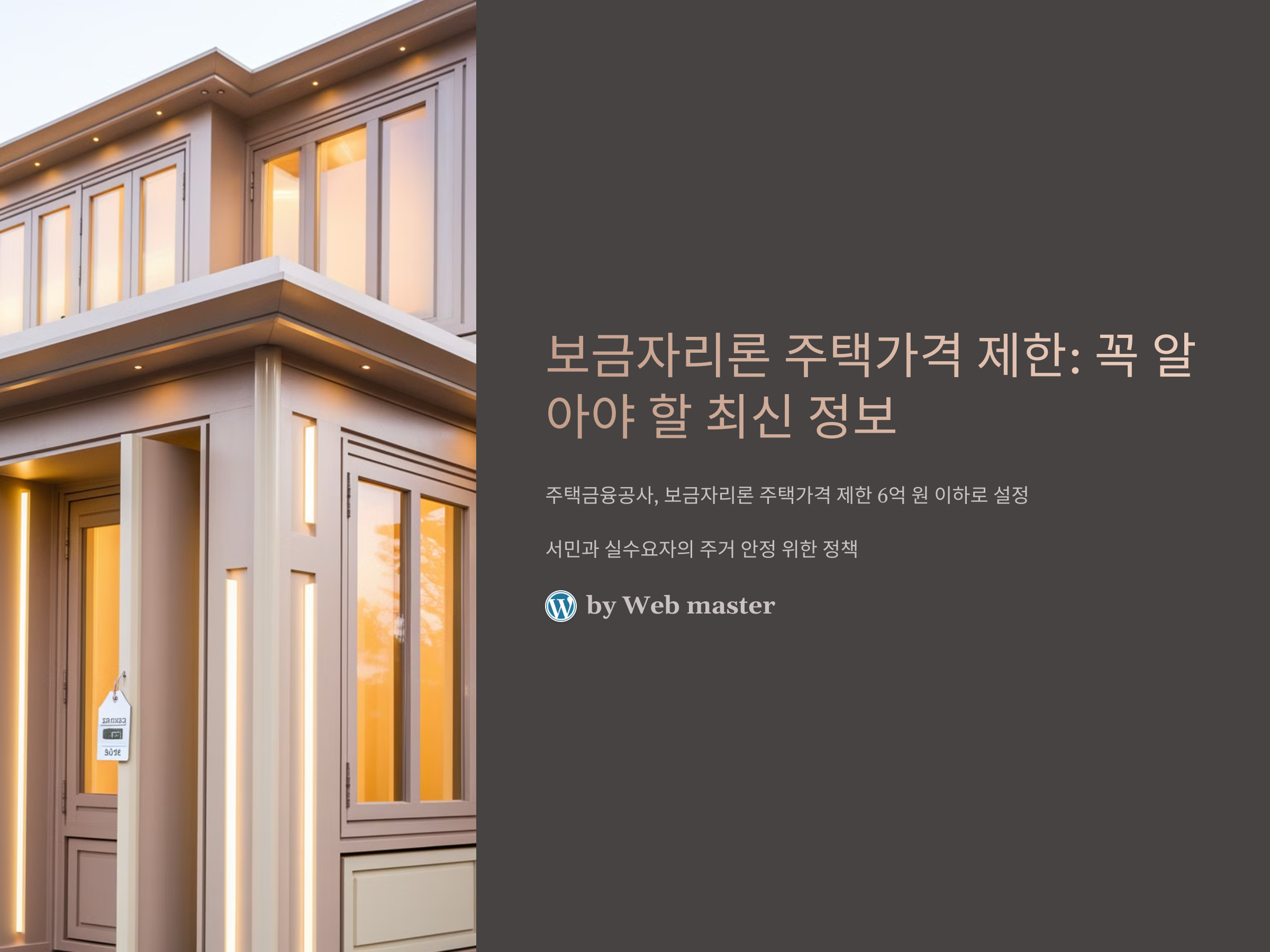 최근 주택금융공사는 보금자리론의 주택가격 제한을 6억 원 이하로 설정하였습니다. 이는 서민과 실수요자의 주거 안정을 위한 정책으로, 주택 가격이 6억 원을 초과할 경우 보금자리론 신청이 불가능합니다. 따라서 주택 구입을 고려하시는 분들은 이 점을 유의하시기 바랍니다.