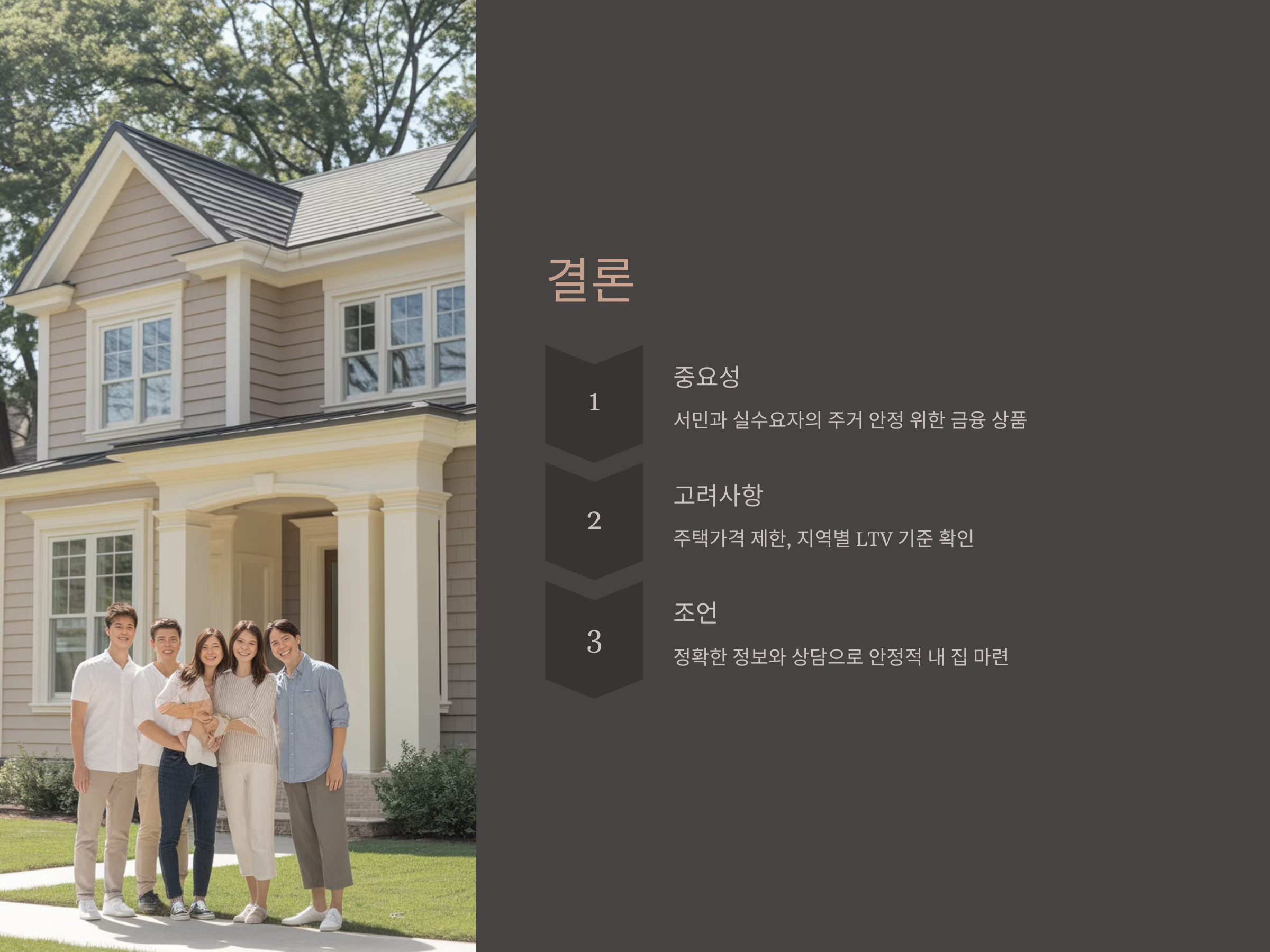 보금자리론은 서민과 실수요자의 주거 안정을 위한 중요한 금융 상품입니다. 주택 구매를 계획하신다면, 현재 적용되는 주택가격 제한과 지역별 LTV 기준 등을 충분히 고려하여 준비하시기 바랍니다. 정확한 정보와 상담을 통해 안정적인 내 집 마련을 이루시길 바랍니