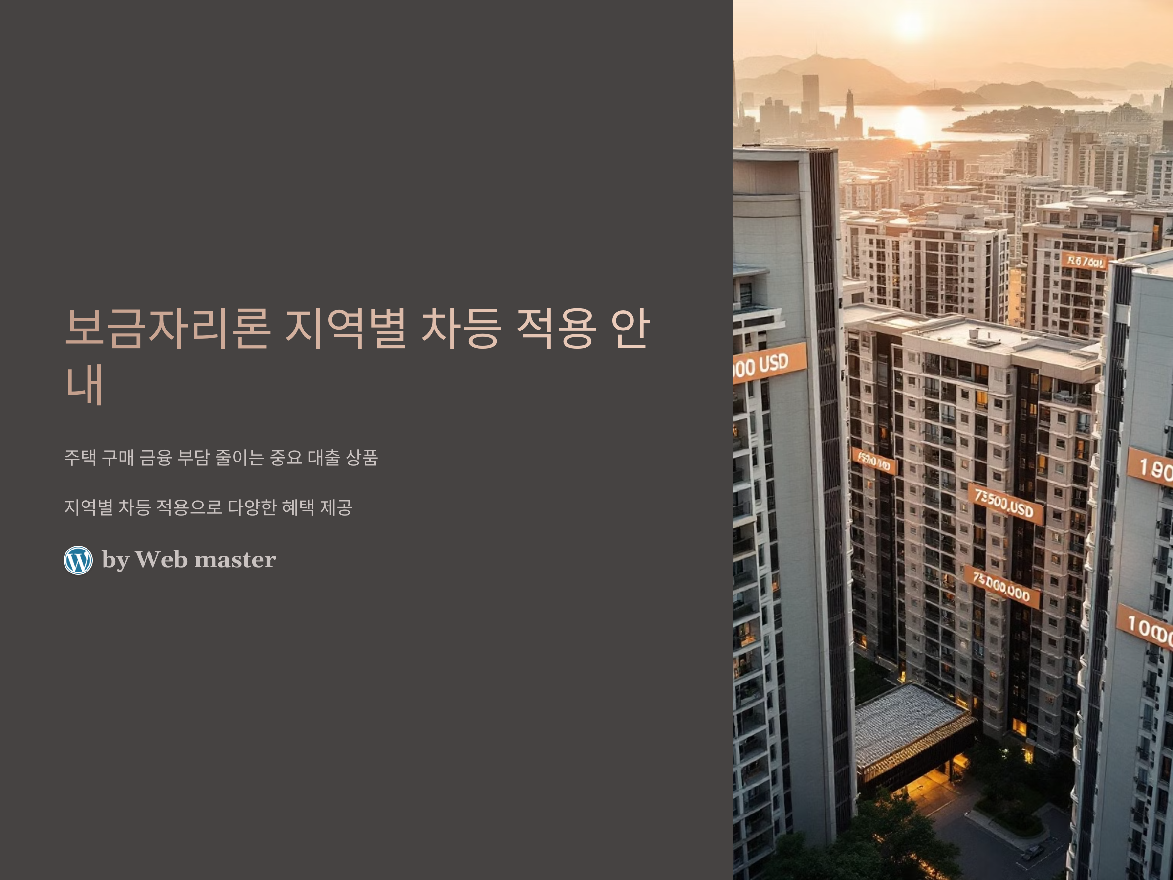 보금자리론 지역별 차등 적용은 주택 구매를 위한 대출 조건이 지역에 따라 달라지는 정책입니다. 주택 가격, 경제 상황 등을 고려하여 대출 금리와 한도가 차별적으로 적용됩니다.