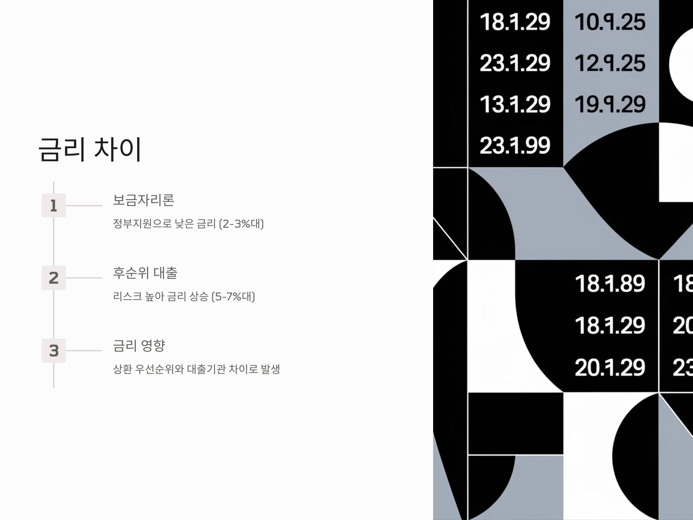 보금자리론과 후순위 대출을 비교할 때, 후순위 대출의 금리가 얼마나 높은지가 중요한 요소입니다. 예를 들어, 보금자리론의 금리가 2~3%대라면, 후순위 대출은 5~7%대의 금리가 책정될 수 있습니다. 이는 후순위 대출이 리스크가 크기 때문입니다.