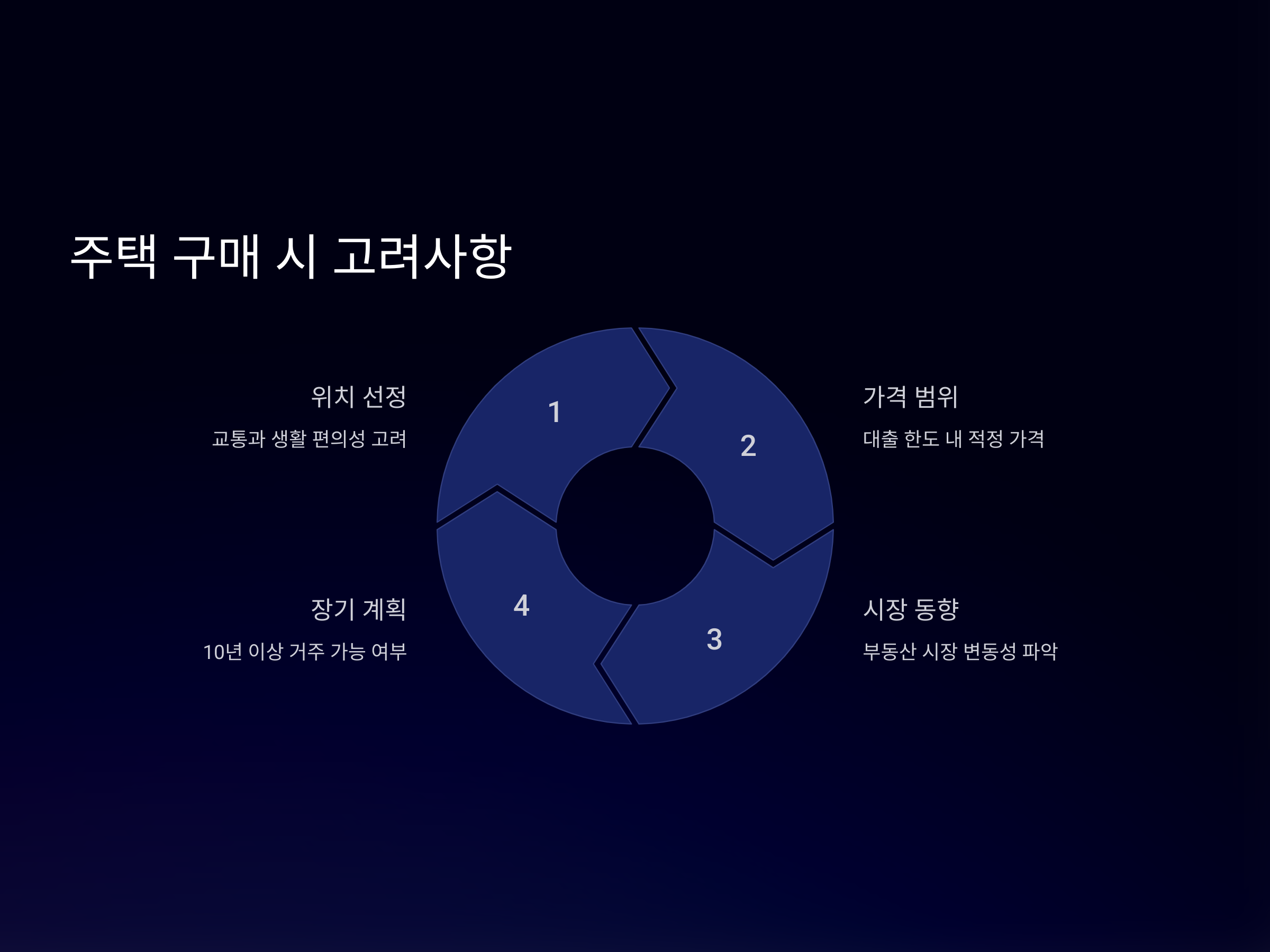 현재의 부동산 시장 동향을 충분히 파악한 후, 주택을 구매하는 것이 중요합니다. 시장의 변동성을 감안하고, 향후 10년 이상 거주할 수 있는 주택을 고르는 것이 현명한 결정이 될 수 있습니다.