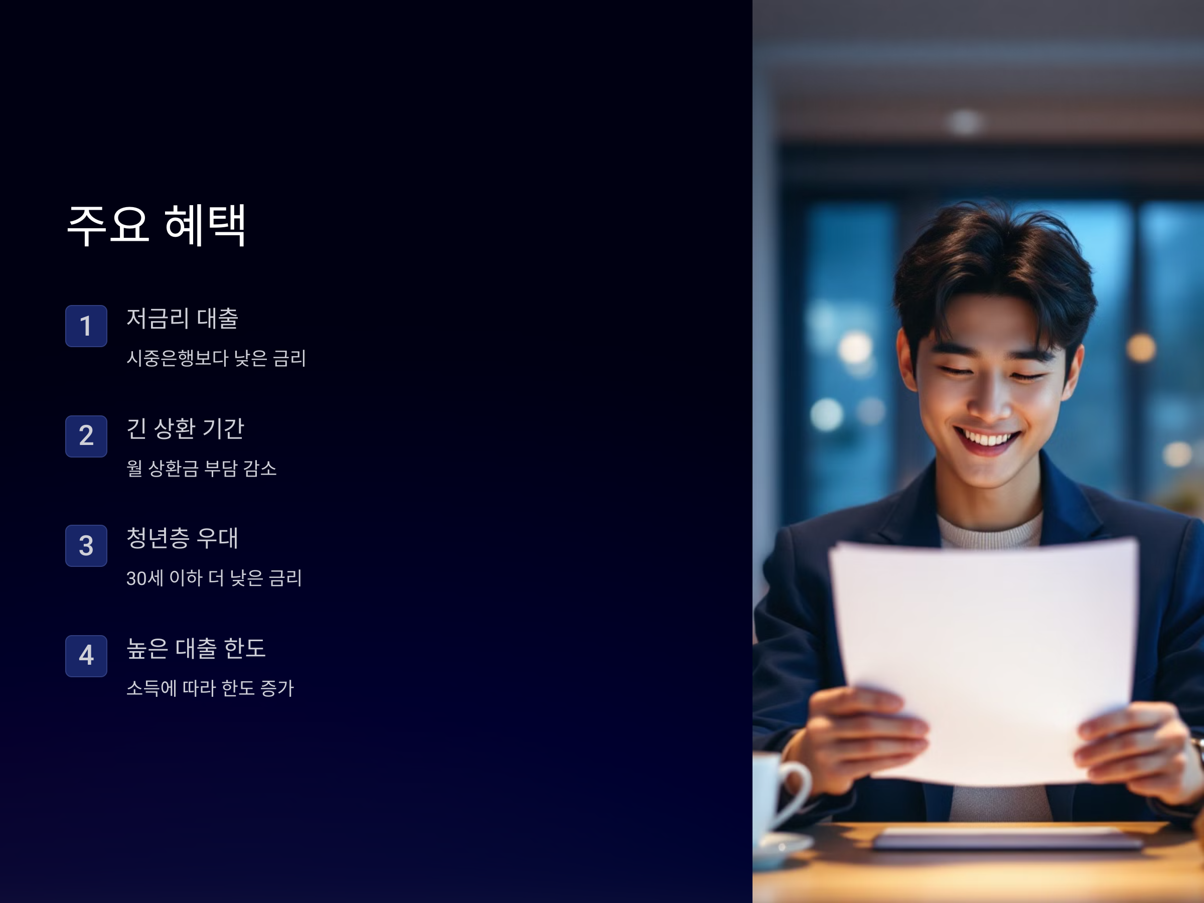 특히 30세 이하 청년층은 더욱 유리한 조건을 제공받을 수 있습니다. 금리가 낮고, 소득에 따라 대출 한도가 더 높아지므로, 자금이 부족해 고민 중인 청년들에게 매우 유용한 대출 상품입니다.