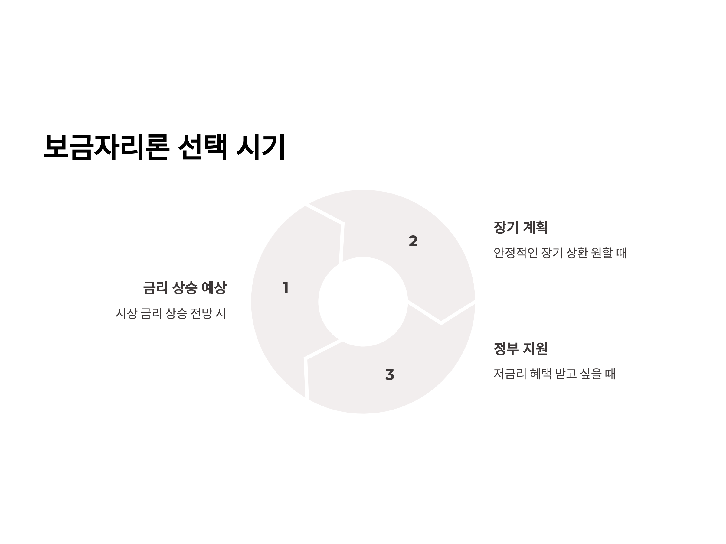 - 고정금리: 대출을 받을 때 설정된 금리가 대출 기간 동안 변하지 않기 때문에, 금리가 오르더라도 추가적인 금리 인상의 위험이 없습니다.