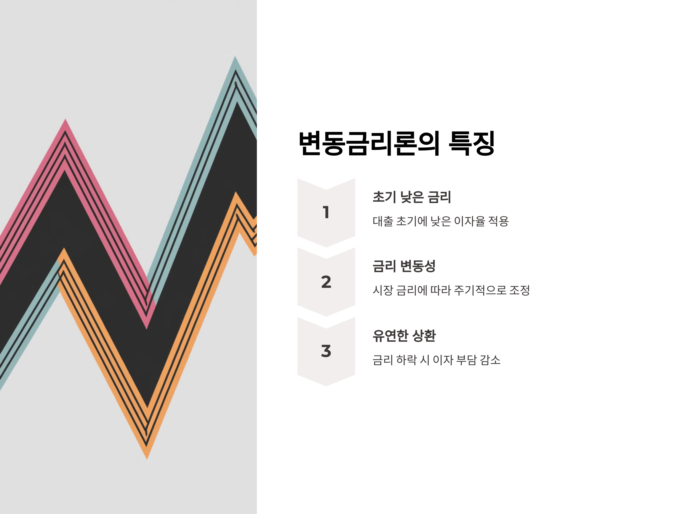 변동금리론은 대출 금리가 변동하는 형태로, 일정 주기마다 금리가 조정됩니다. 일반적으로 변동금리는 기준금리나 시장 금리에 따라 변경되며, 대출 초기에는 금리가 낮은 경우가 많습니다. 다만, 금리가 오르면 상환금액이 늘어날 수 있기 때문에 금리 변동에 따른 리스크가 존재합니다.