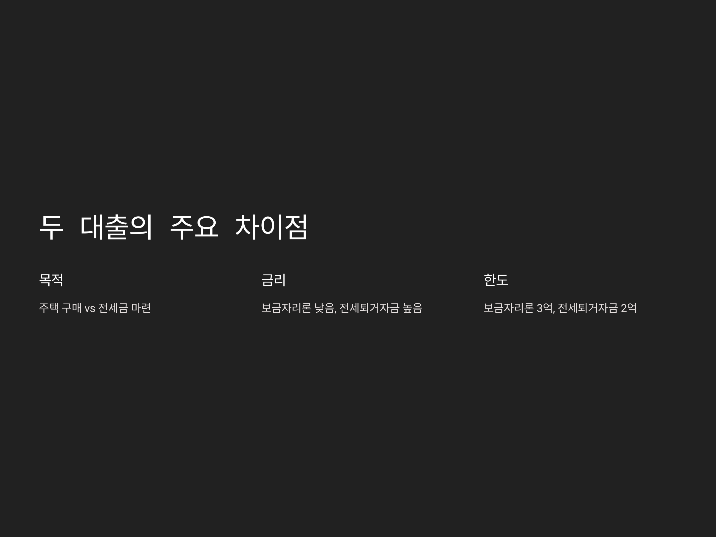 보금자리론과 전세퇴거자금대출 비교