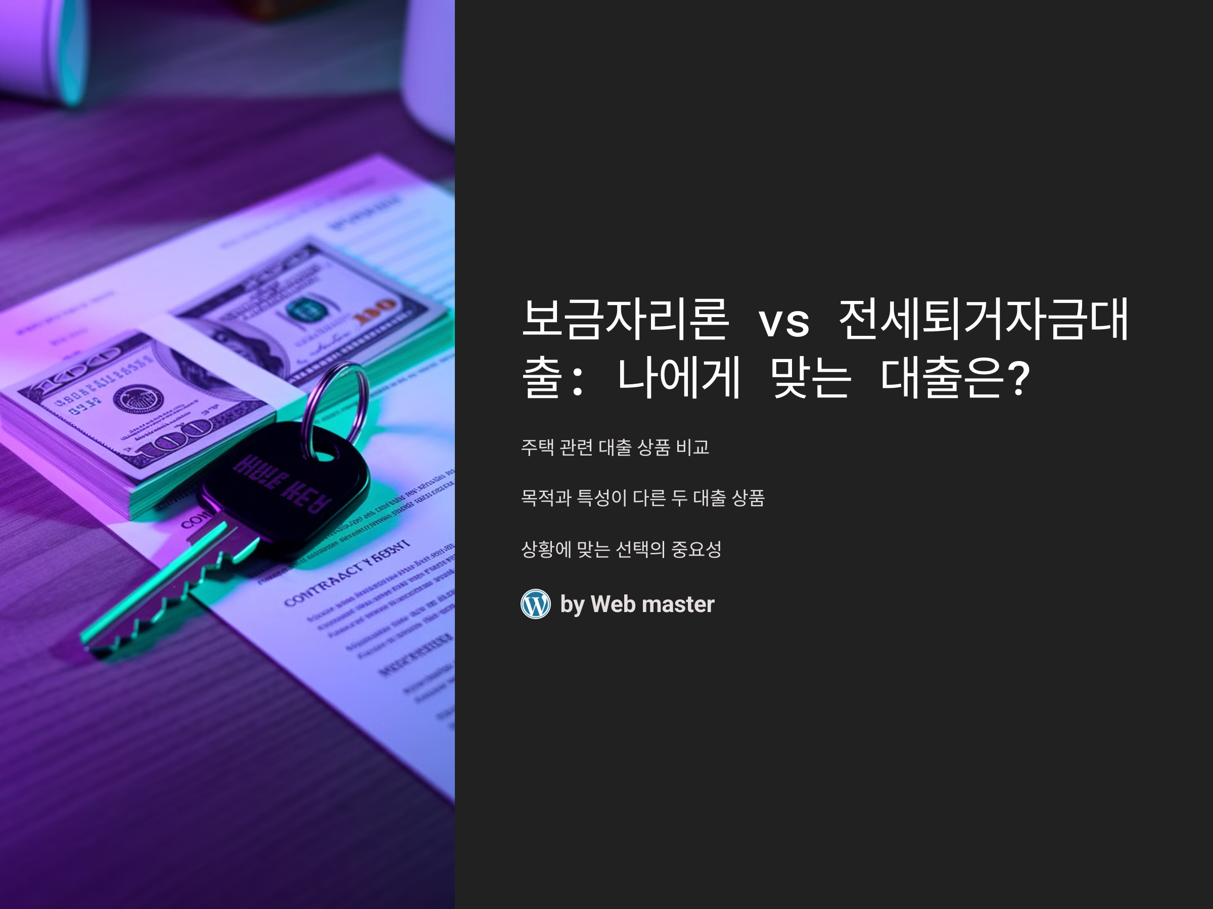 보금자리론과 전세퇴거자금대출은 모두 주택과 관련된 금융상품이지만, 그 목적과 특성이 매우 다릅니다. 이 두 대출 상품은 각각의 목적에 맞게 사용될 수 있기 때문에, 자신의 상황에 맞춰 적절한 대출을 선택하는 것이 중요합니다. 이 글에서는 보금자리론과 전세퇴거자금대출의 특징, 차이점, 장단점을 비교해보고, 각 대출이 어떤 경우에 유리한지 알아보겠습니다.