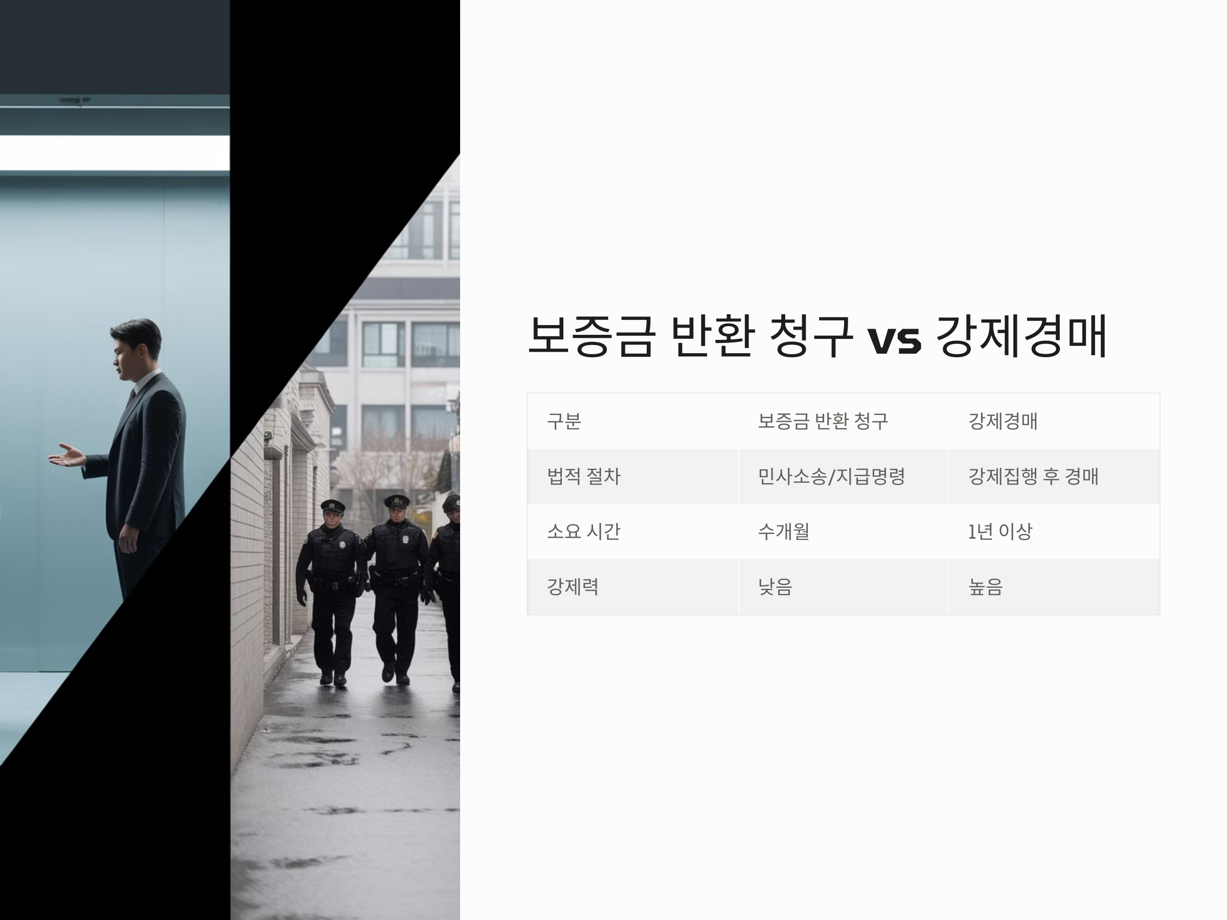 | 구분 | 보증금 반환 청구 | 강제경매 |
