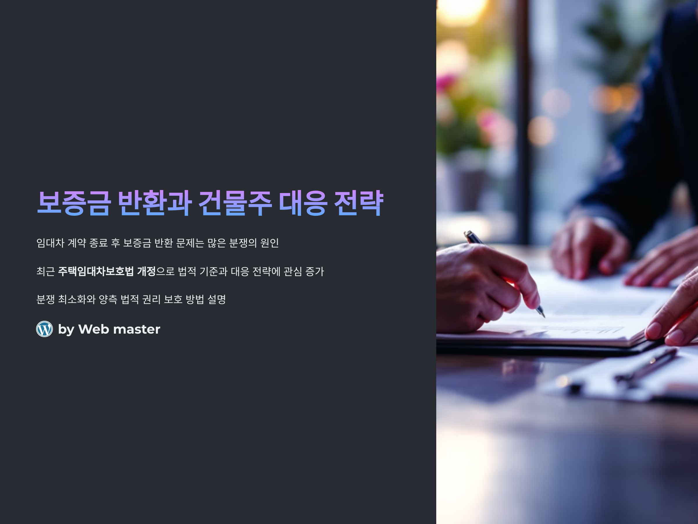임대차 계약이 종료된 후 보증금 반환 문제는 많은 분쟁의 원인입니다. 특히 최근 주택임대차보호법 개정과 관련하여 보증금 반환에 대한 법적 기준과 건물주의 대응 전략에 대한 관심이 커지고 있습니다. 임대인과 임차인 모두가 발생할 수 있는 문제를 미리 예측하고, 원활한 계약 종료를 위해 필요한 사항들을 명확히 이해하는 것이 중요합니다. 이번 포스팅에서는 보증금 반환 절차와 건물주가 취할 수 있는 효과적인 대응 전략을 다뤄보겠습니다.
