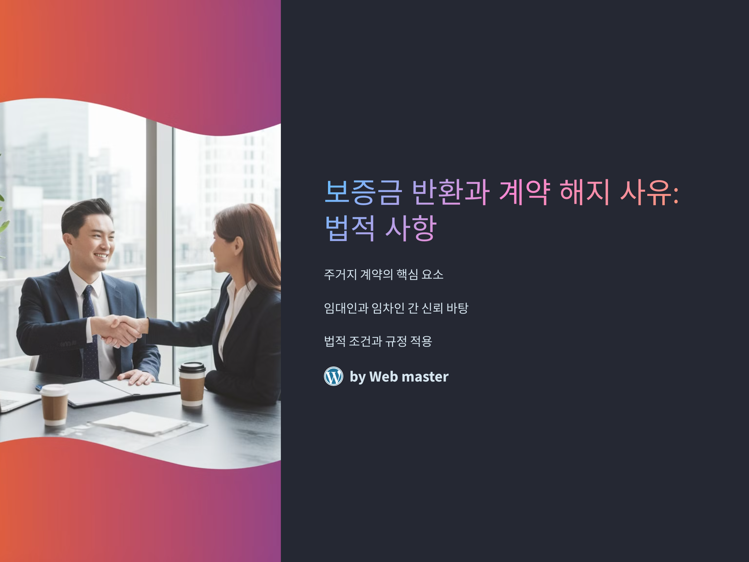 보증금 반환과 계약 해지 사유는 주거지 계약에서 가장 중요한 부분 중 하나입니다. 계약을 체결할 때, 보증금은 임대인과 임차인 간의 신뢰를 바탕으로 설정되는 중요한 금액입니다. 그러나 계약 종료 시 보증금을 반환받는 것은 간단하지 않을 수 있으며, 다양한 법적 조건과 규정이 적용됩니다. 이 글에서는 보증금 반환 절차와 계약 해지 사유에 대해 명확히 이해할 수 있도록 도와드리겠습니다.