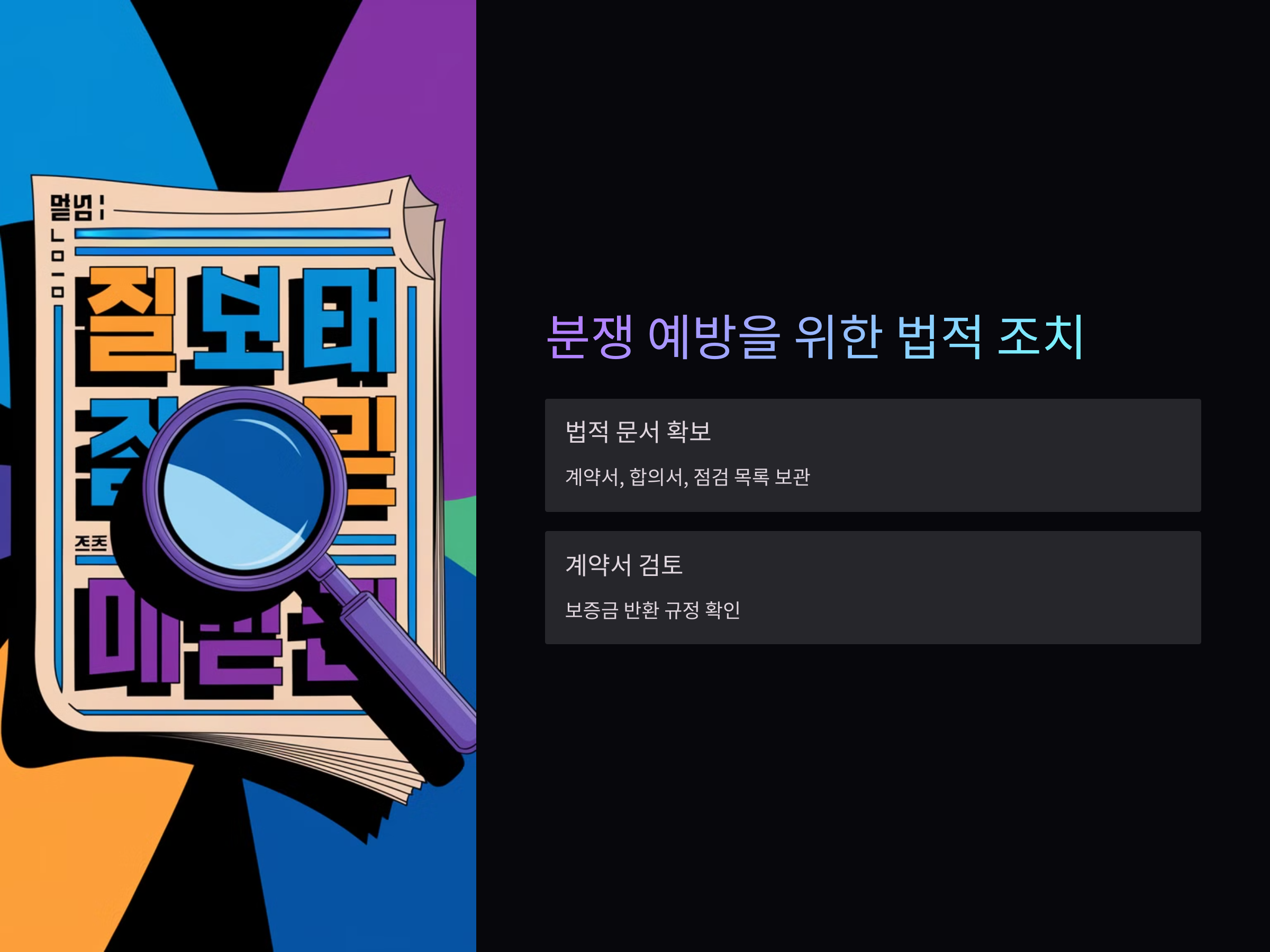 보증금 반환과 계약 해지 후 분쟁을 예방하려면, 몇 가지 중요한 법적 조치를 취해야 합니다.