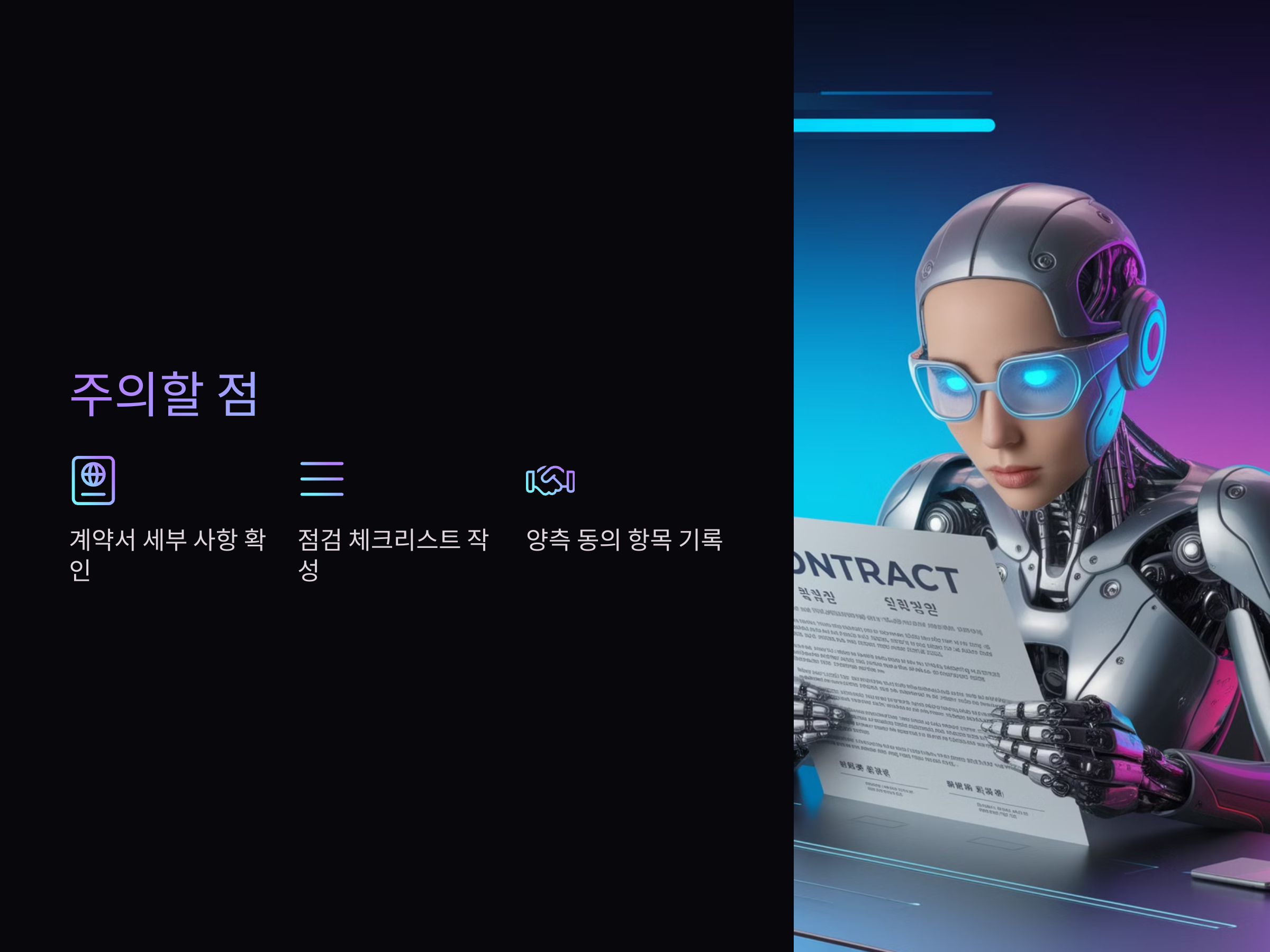 계약 해지 후 점검을 할 때는 체크리스트를 작성하여, 양측 모두 동의하는 항목을 기록해두는 것이 좋습니다. 이를 통해 나중에 보증금 반환에 문제가 생길 경우, 양측 간에 협의가 수월해질 수 있습니다.