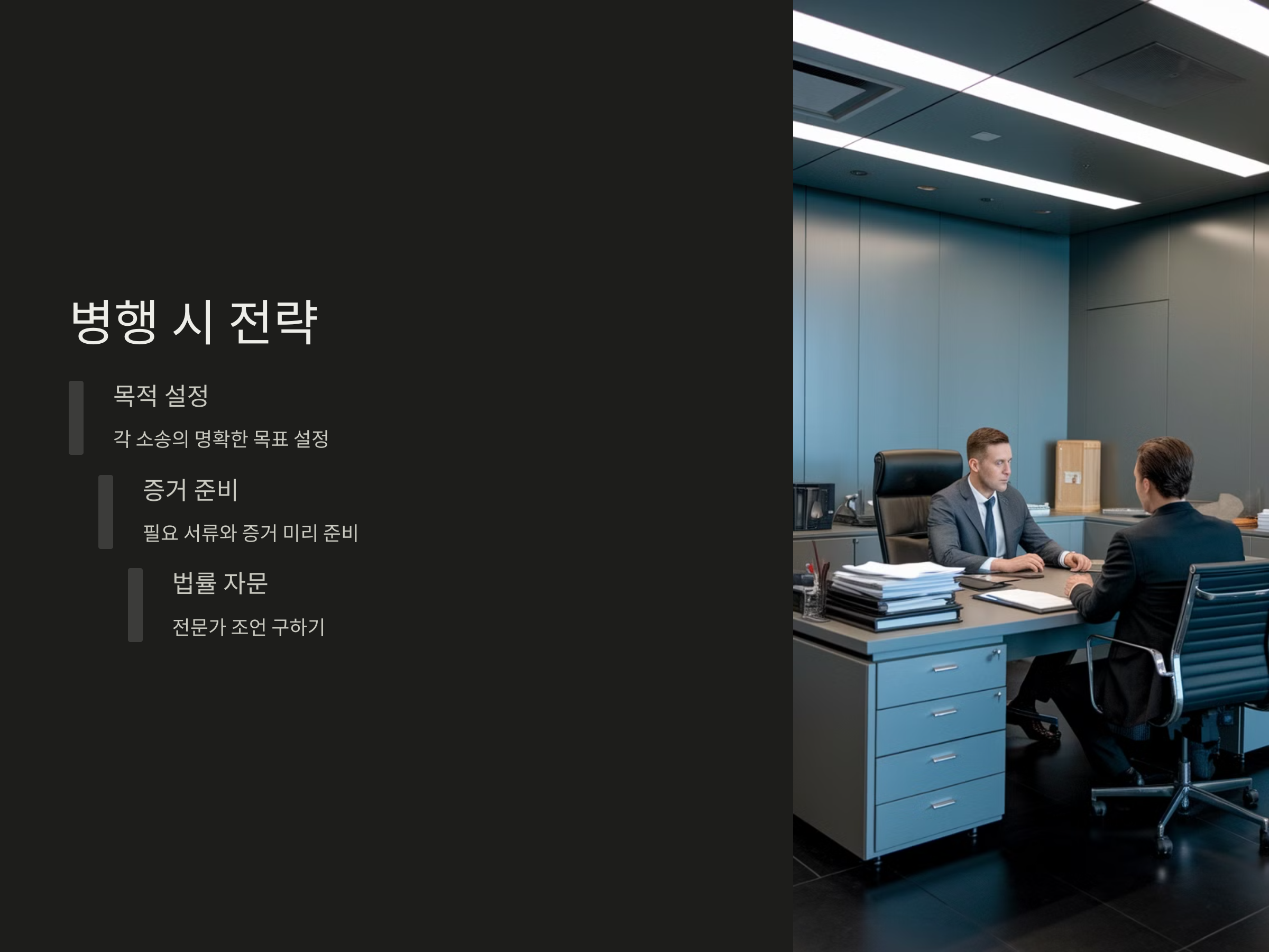 두 가지 소송을 동시에 진행하면 법적 비용이 증가할 수 있지만, 병행 소송을 통해 빠르게 해결할 수 있는 장점이 있습니다.