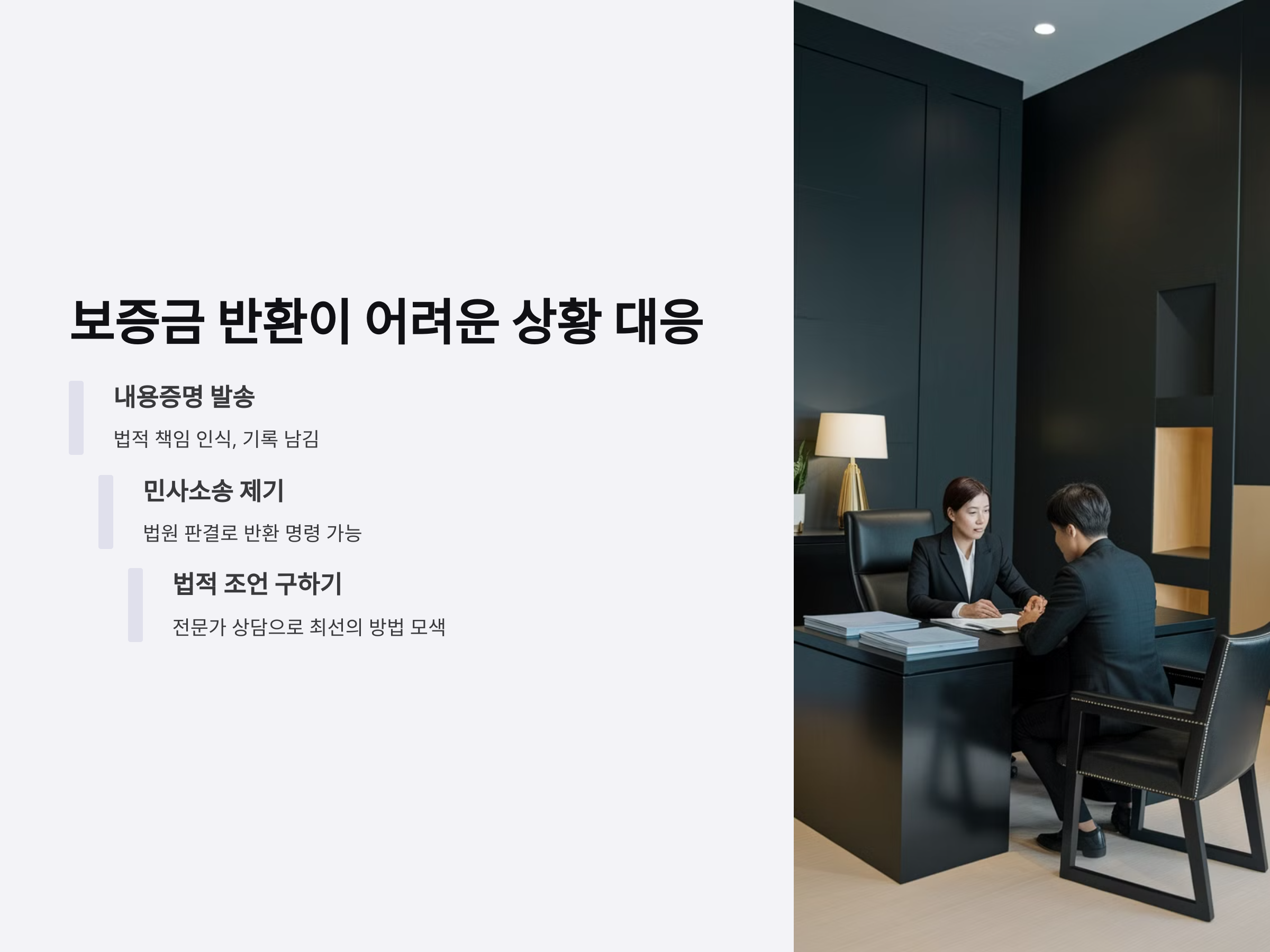 보증금 반환이 지연되거나, 임대인이 반환을 거부하는 경우에는 어떻게 대응해야 할까요? 이때는 몇 가지 대응 방법을 통해 문제를 해결할 수 있습니다.