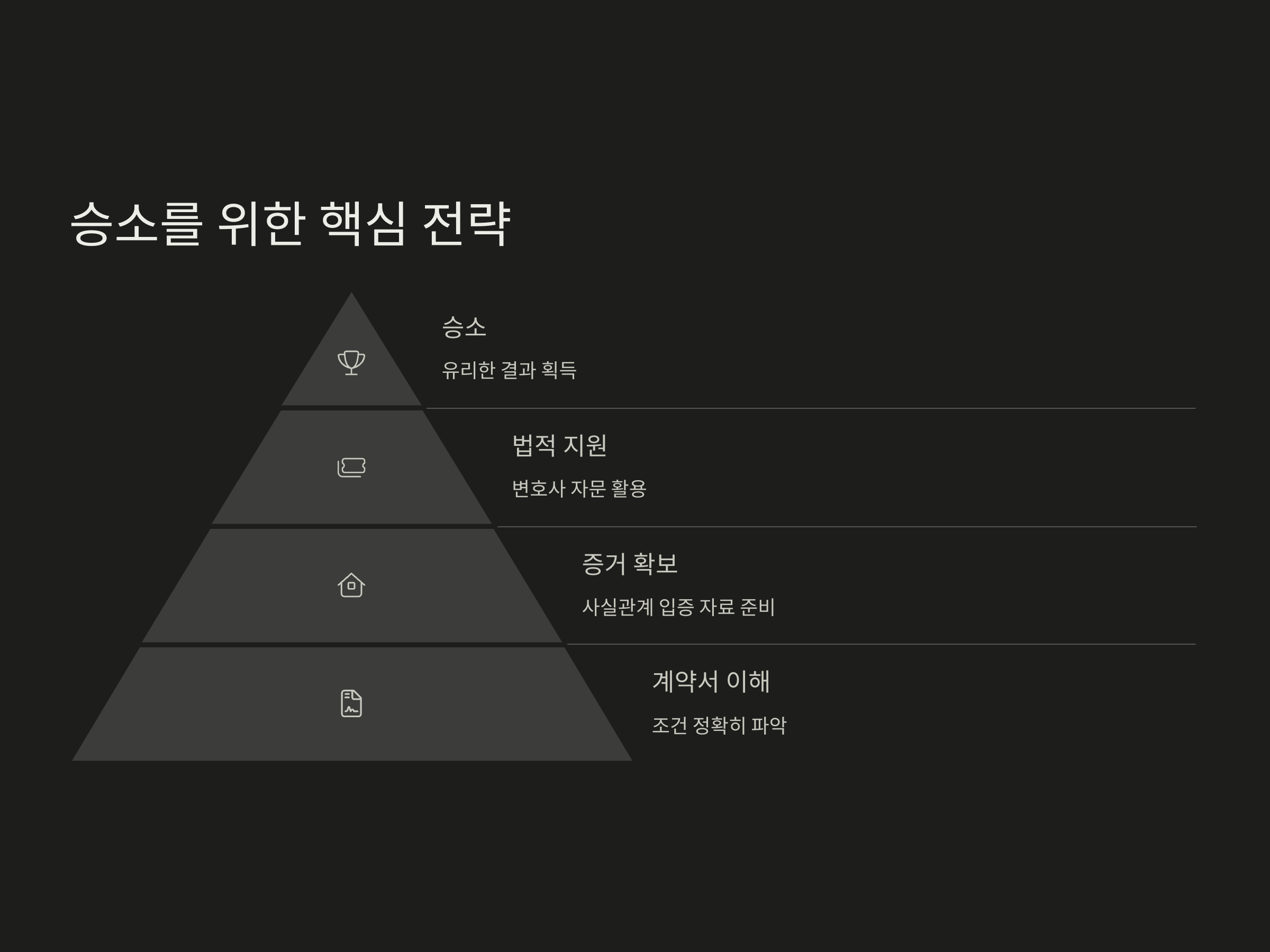 법원에서 승소하기 위해서는 전문적인 법적 지원을 받는 것이 중요합니다. 변호사는 계약서 분석, 증거 제출, 법적 절차 진행 등에서 중요한 역할을 하며, 세입자가 유리한 결과를 얻을 수 있도록 도와줍니다. 보증금 반환 소송은 매우 중요한 문제이므로, 이 과정에서 법적 지원을 받는 것이 필수적입니다.