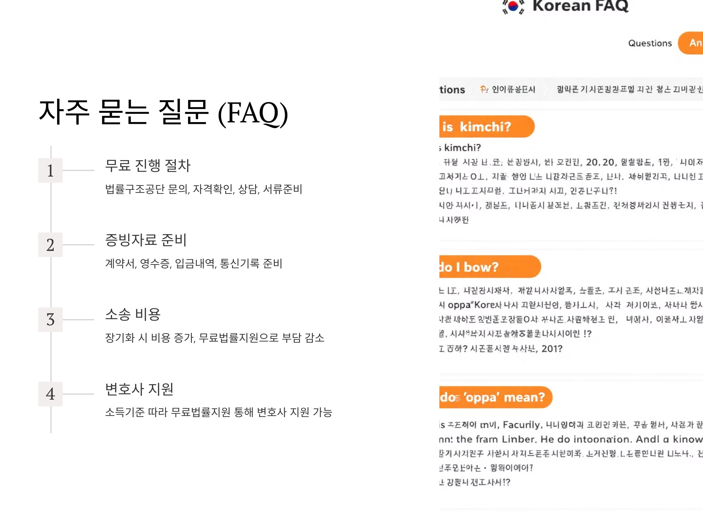 - 무료법률 상담 서비스: 각 지방자치단체와 법률 단체에서 제공하는 무료법률 상담 서비스도 활용할 수 있습니다. 온라인 상담을 통해 법적 조언을 받거나, 직접 상담을 받을 수 있습니다.