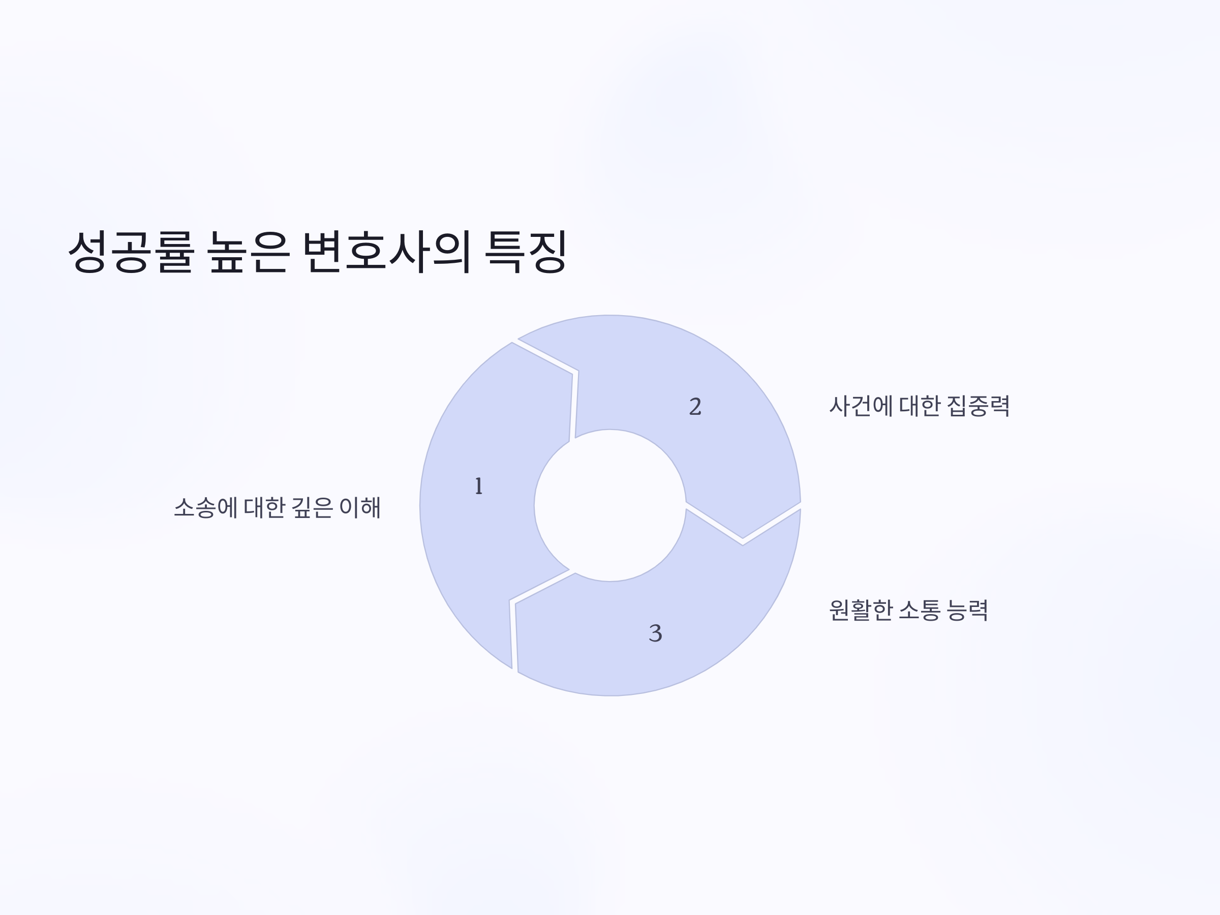 둘째, 사건에 대한 집중력이 뛰어납니다. 변호사가 사건에 충분히 집중하고 준비할 수 있다면, 세부적인 법적 문제들을 놓치지 않으며, 재판에서 유리한 입장을 취할 수 있습니다.