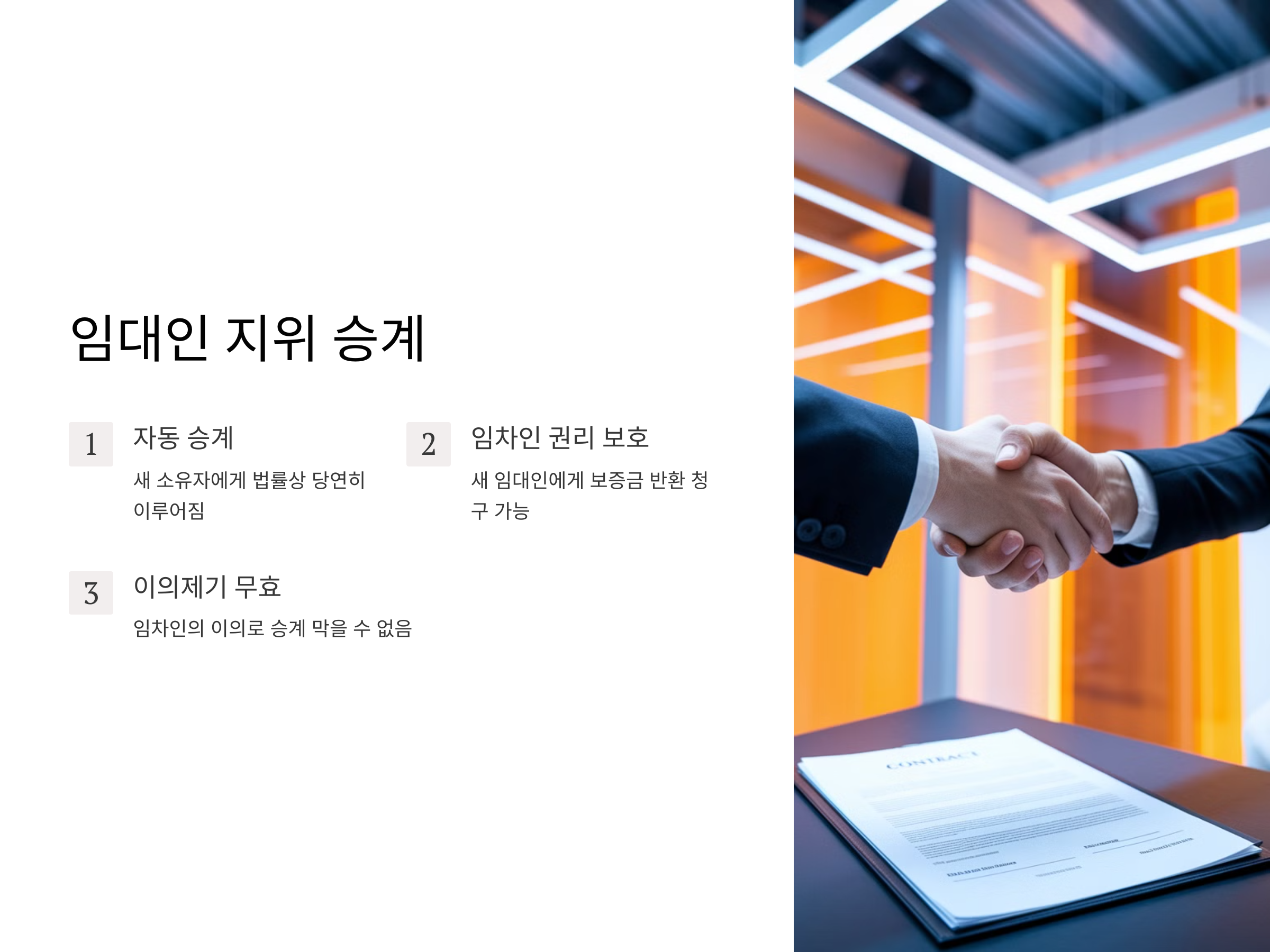 대법원 2021. 11. 11. 선고 2021다251929 판결에서는 임대인의 지위 승계에 대한 중요한 판단을 내렸습니다. 이 판결에서 대법원은 "임대인의 지위 승계는 법률상 당연히 이루어지는 것이므로, 임차인의 이의제기가 승계를 막을 수 없다"고 판시하였습니다. 즉, 임차인이 임대인의 변경에 이의를 제기하더라도 법률상 임대인의 지위는 자동으로 새로운 소유자에게 이전된다는 의미입니다. 이는 임차인의 권리를 보호하기 위한 주택임대차보호법의 취지와 부합하며, 임차인은 새로운 임대인에게 보증금 반환을 청구할 수 있습니다.