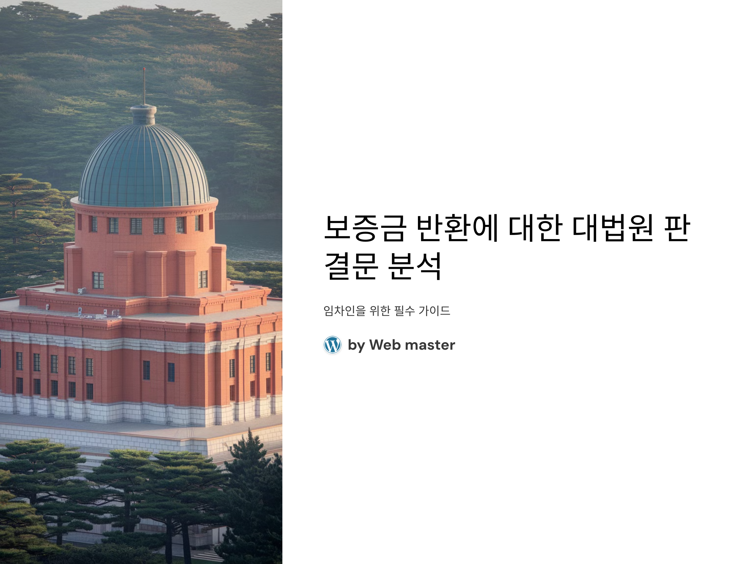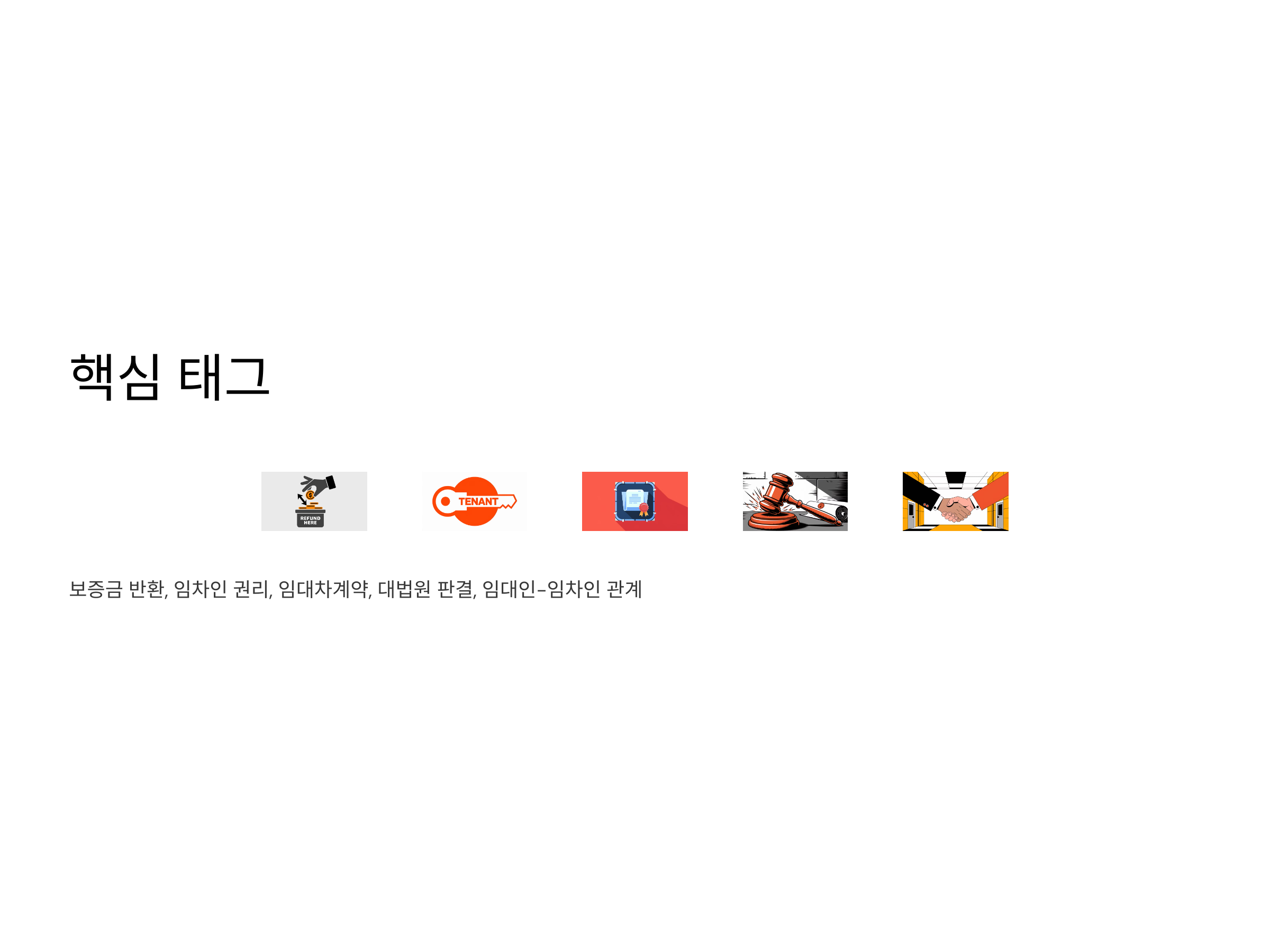 임대차 계약 종료 후 보증금 반환 문제는 임차인과 임대인 간의 주요 분쟁 요소 중 하나입니다. 최근 전세 사기와 보증금 미반환 사례가 빈번하게 발생하면서, 임차인들의 불안감이 커지고 있습니다. 이러한 상황에서 대법원의 판결은 임차인과 임대인 모두에게 중요한 법적 지침을 제공합니다. 이번 글에서는 보증금 반환과 관련된 주요 대법원 판결을 분석하여 임차인들이 알아야 할 핵심 사항을 정리하였습니다.