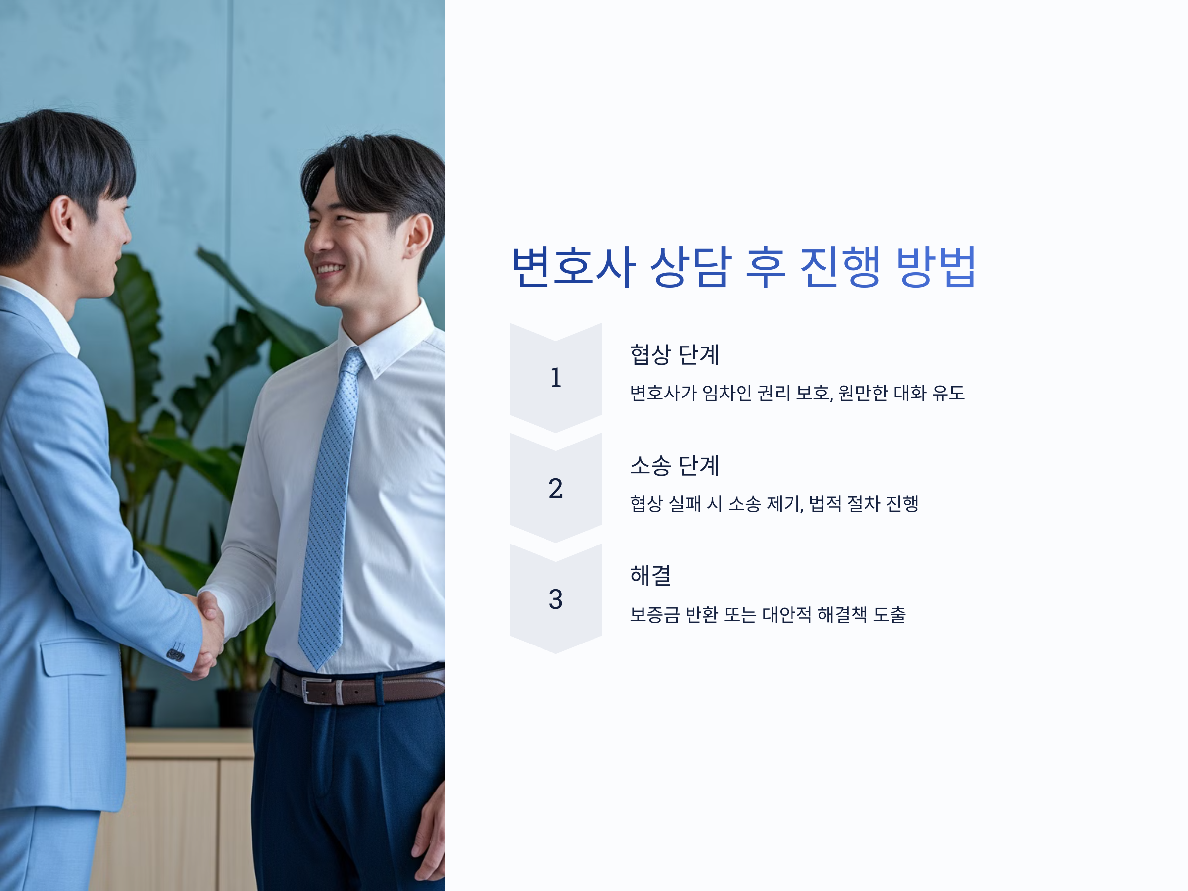 보증금 반환이 이루어지지 않으면, 첫 번째 단계로 집주인과 협의 및 협상 절차를 거칩니다. 이때 변호사의 도움을 받는다면, 협상 과정에서 보다 합리적인 대안을 제시할 수 있으며, 법적 근거를 바탕으로 보증금 반환을 요청할 수 있습니다.