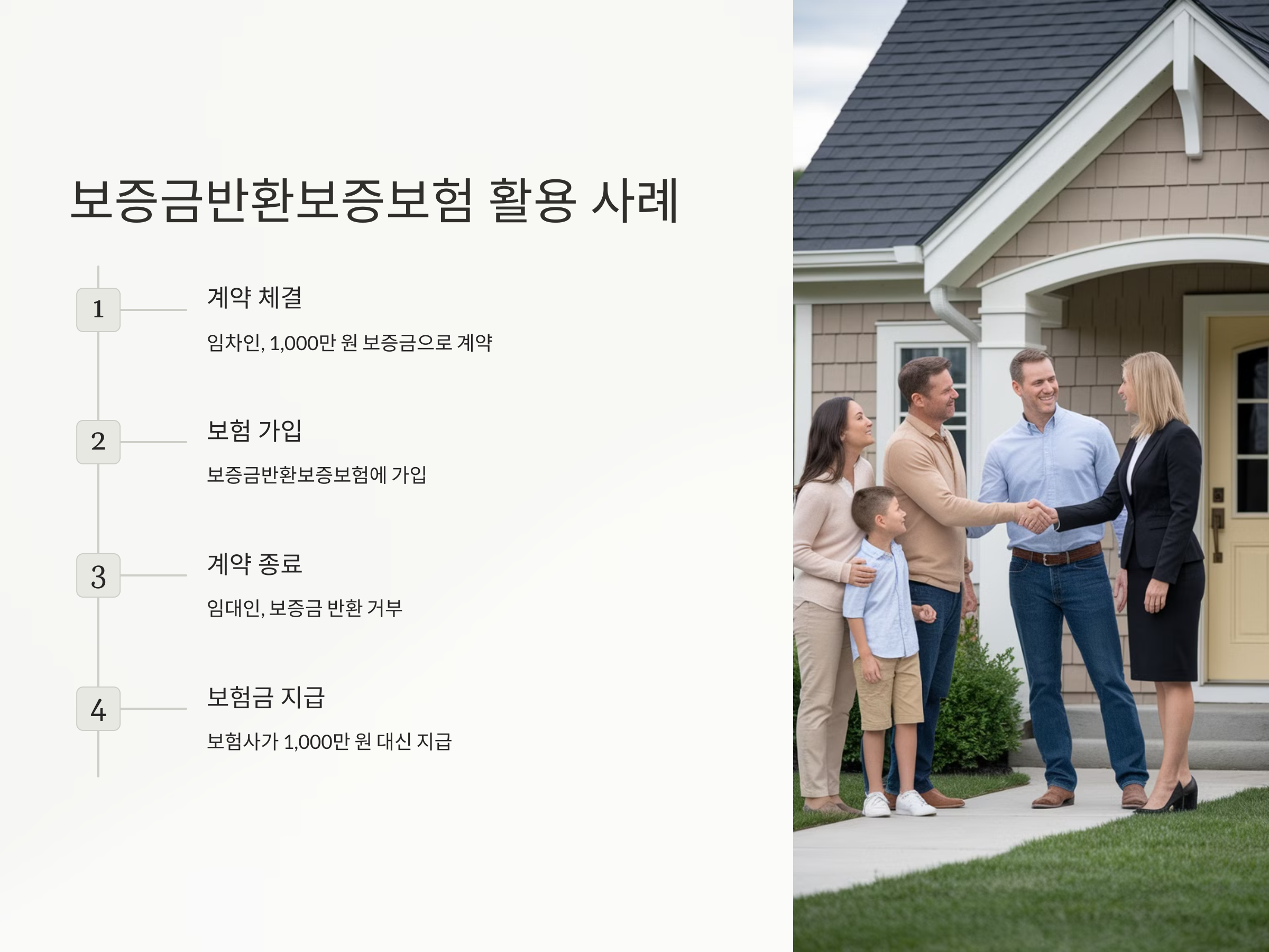 보증금반환보증보험은 특히 임차인이 계약이 종료된 후 보증금을 반환받을 수 없을 때 유용합니다. 예를 들어, 임대인이 경제적으로 어려운 상황에 처하거나, 일부러 보증금을 지연시키는 경우에 보험을 통해 보증금을 빠르게 돌려받을 수 있습니다. 또한, 임대인과의 법적 분쟁을 피할 수 있는 장점이 있습니다.