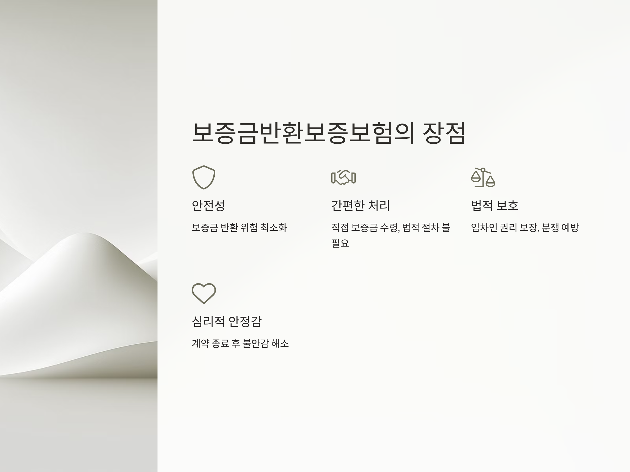 - 안전성: 임차인이 보증금을 반환받지 못할 위험을 최소화할 수 있습니다.