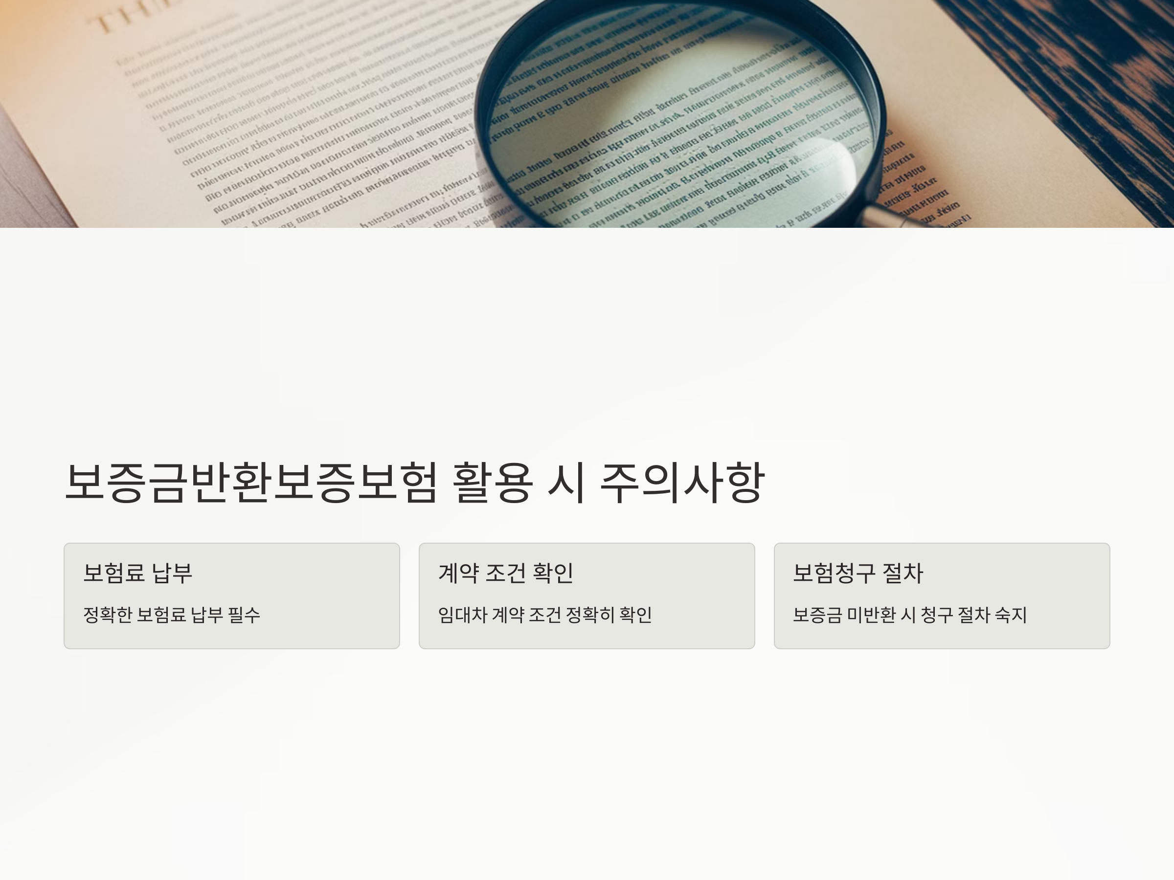 - 임대차 계약 조건 확인: 보증금반환보증보험은 특정 조건 하에만 유효하므로, 계약 조건을 정확히 확인해야 합니다.
