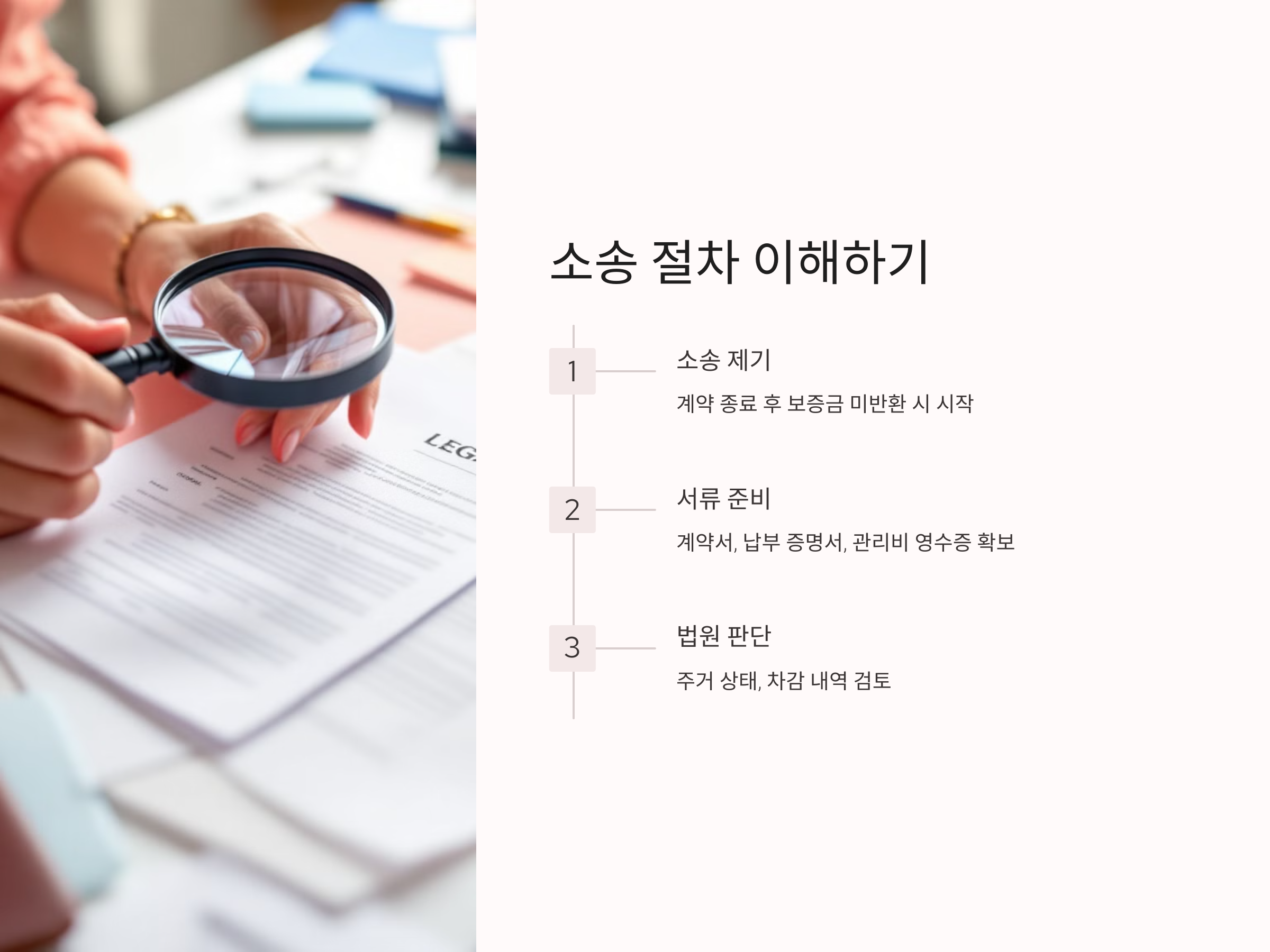 보증금 반환 소송은 법적 절차와 복잡한 서류 작업을 동반하는 경우가 많기 때문에, 법적 전문가의 조언을 받는 것이 매우 중요합니다. 변호사는 세입자가 소송을 진행하는 데 있어 필요한 모든 서류를 준비하고, 법적 전략을 세우는 데 도움을 줄 수 있습니다.