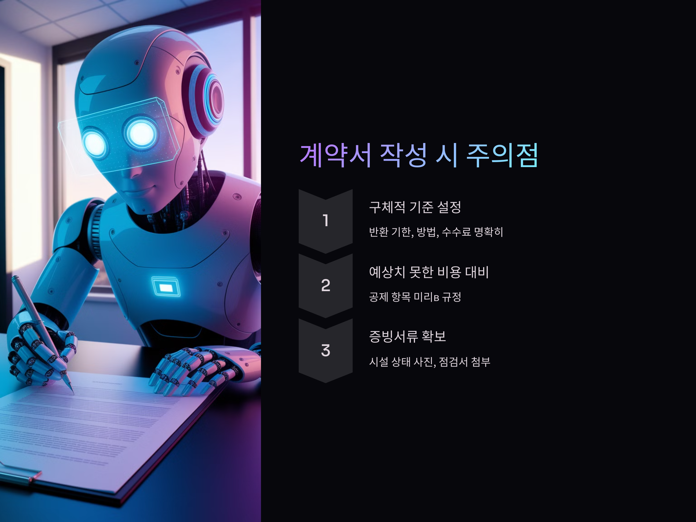 디지털 시대의 계약서 작성은 자동화된 시스템으로 편리하지만, 여전히 법적 요건을 충족하는 것이 매우 중요합니다. 보증금 반환에 관한 명확한 규정이 없다면, 계약 종료 후 불필요한 분쟁이 발생할 수 있습니다. 따라서 계약서 작성 시 고려해야 할 주요 요소와 세부 사항들을 정확히 짚어봅시다.