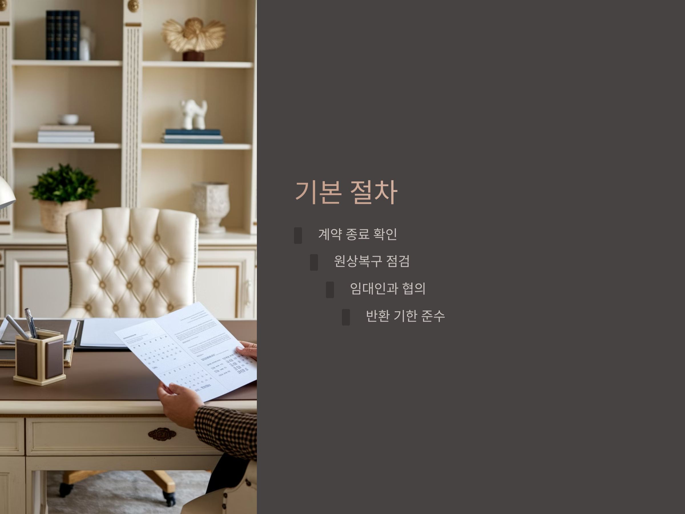 임대인과 직접 만나거나 서면으로 보증금 반환을 요청합니다. 이때 반환 기한과 금액을 명확히 정리해야 합니다.