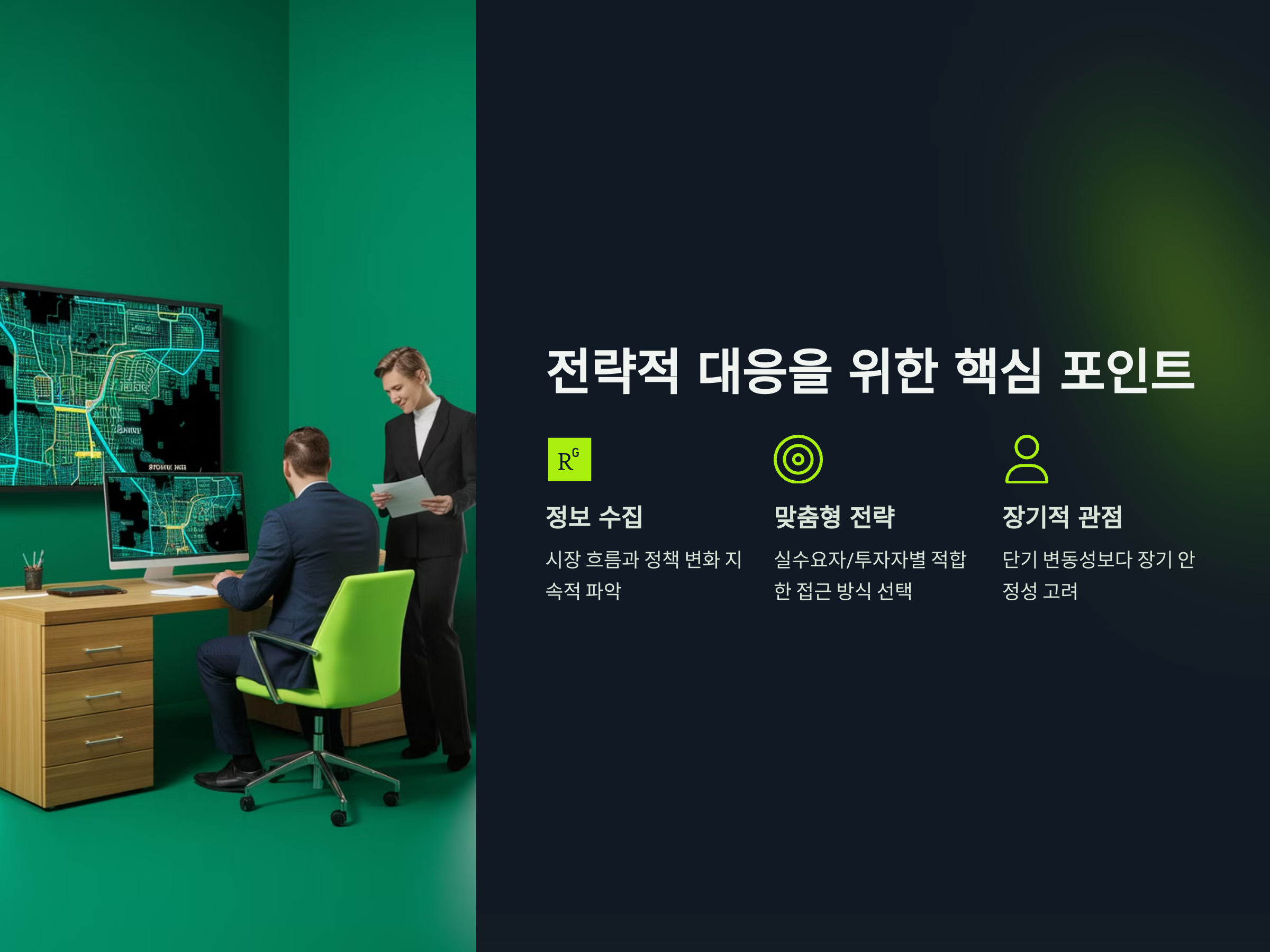 단기적인 관점에서는 매매 가격이 일시적으로 하락할 수 있지만, 장기적으로 안정된 수요를 바탕으로 시장은 점차적으로 회복될 것으로 예측됩니다. 따라서, 투기적 접근보다는 안정적인 수익을 추구하는 접근이 중요해질 것입니다. 정부의 규제는 지속적으로 변할 가능성이 있기 때문에, 이에 대한 유연한 대응이 필요합니다.