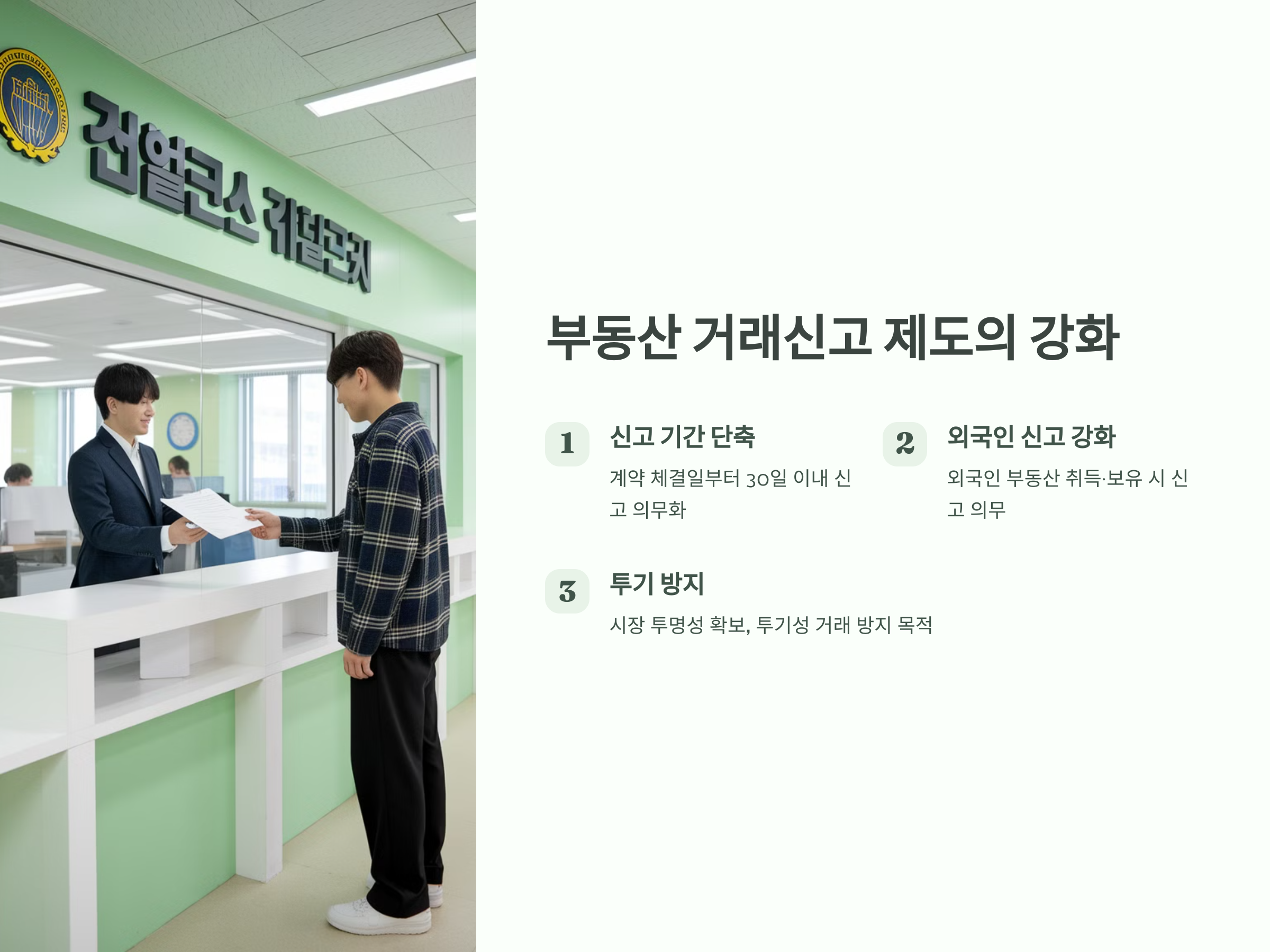2025년부터 부동산 거래의 투명성을 높이기 위해 거래신고 제도가 강화되었습니다. 이제 모든 부동산 거래는 계약 체결일부터 30일 이내에 신고해야 하며, 이를 위반할 경우 과태료가 부과됩니다. 특히, 외국인의 부동산 취득 시에도 신고 의무가 강화되어, 외국인 등이 부동산을 취득하거나 보유할 경우 반드시 신고해야 합니다. 이는 부동산 시장의 투명성을 확보하고, 투기성 거래를 방지하기 위한 조치입니다. citeturn0search0