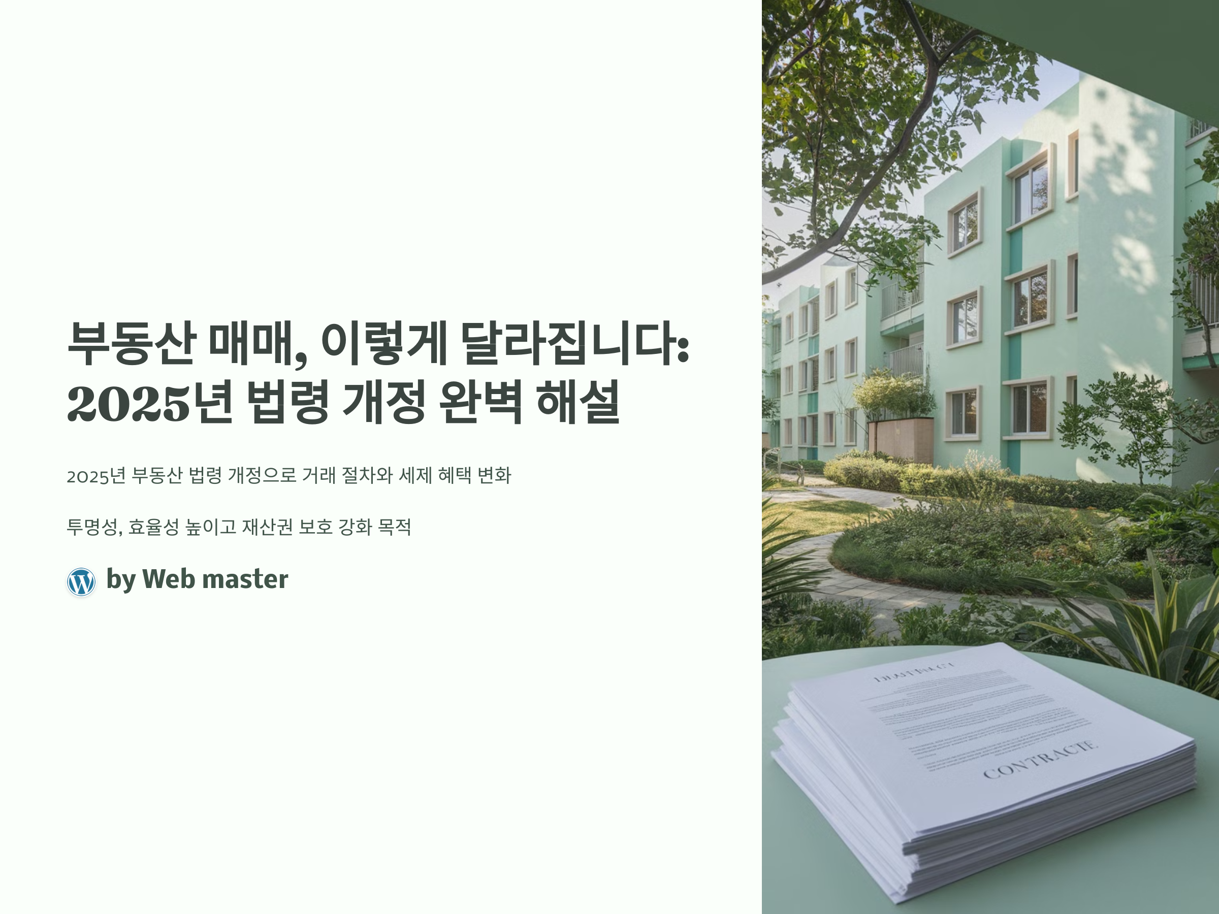 2025년을 맞아 부동산 매매와 관련된 여러 법령이 개정되어 부동산 거래 절차와 세제 혜택 등에 변화가 생겼습니다. 이러한 변화는 부동산 거래의 투명성과 효율성을 높이고, 국민의 재산권 보호를 강화하기 위한 목적을 가지고 있습니다. 이번 글에서는 2025년 부동산 매매 관련 주요 법령 개정 사항을 상세히 살펴보고, 이를 통해 예상되는 시장의 변화를 예측해 보겠습니다.