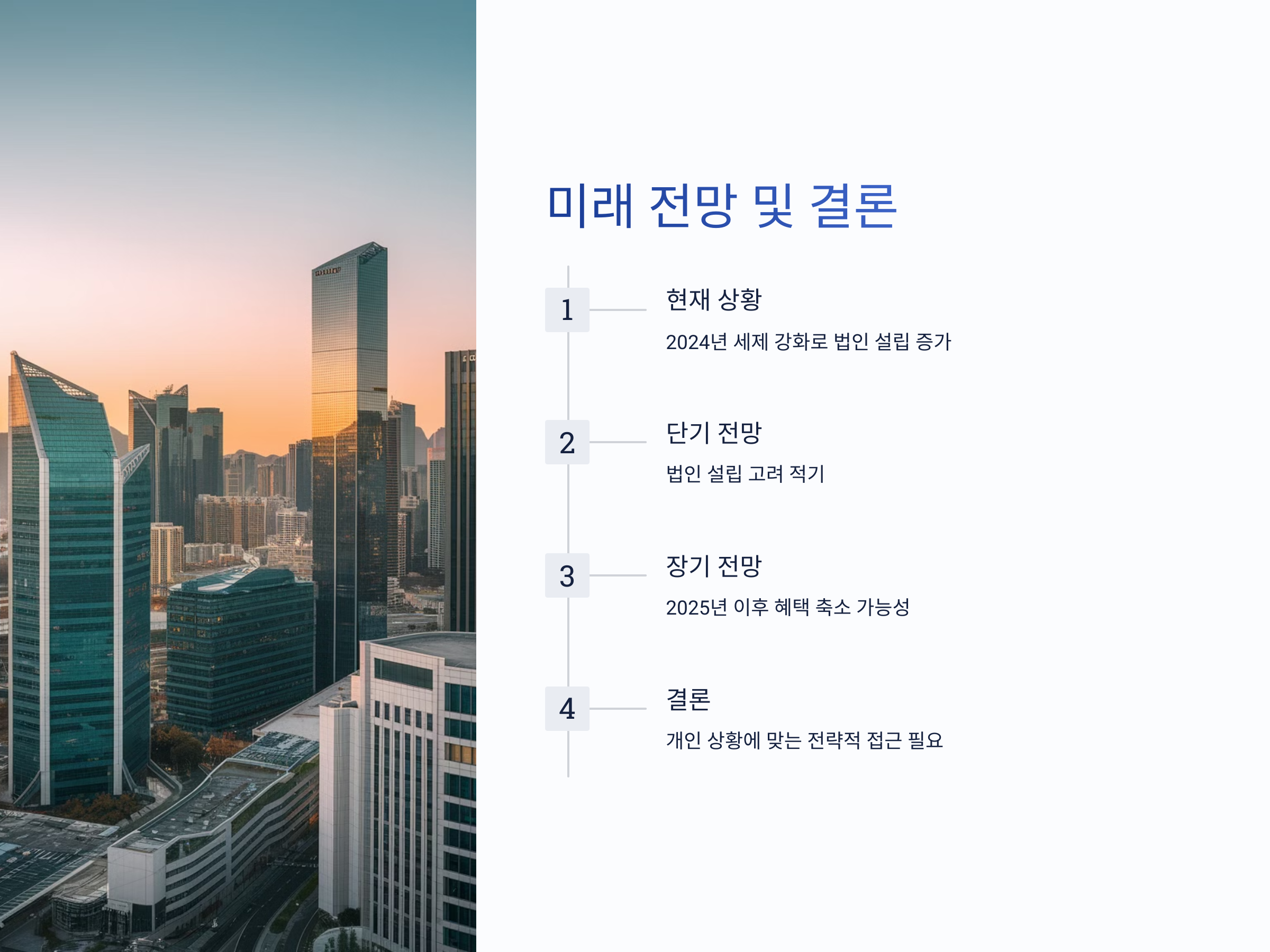 또한 세법 개정으로 법인에 대한 규제가 강화되면 오히려 세금이 더 늘어날 수 있습니다. 2025년 이후에는 부동산 법인에 대한 세제 혜택이 줄어들거나 폐지될 가능성도 논의되고 있어 장기적인 전략이 필요합니다. 게다가 법인 운영의 복잡성과 행정적 책임은 개인에 비해 훨씬 크다는 점을 명심해야 합니다.