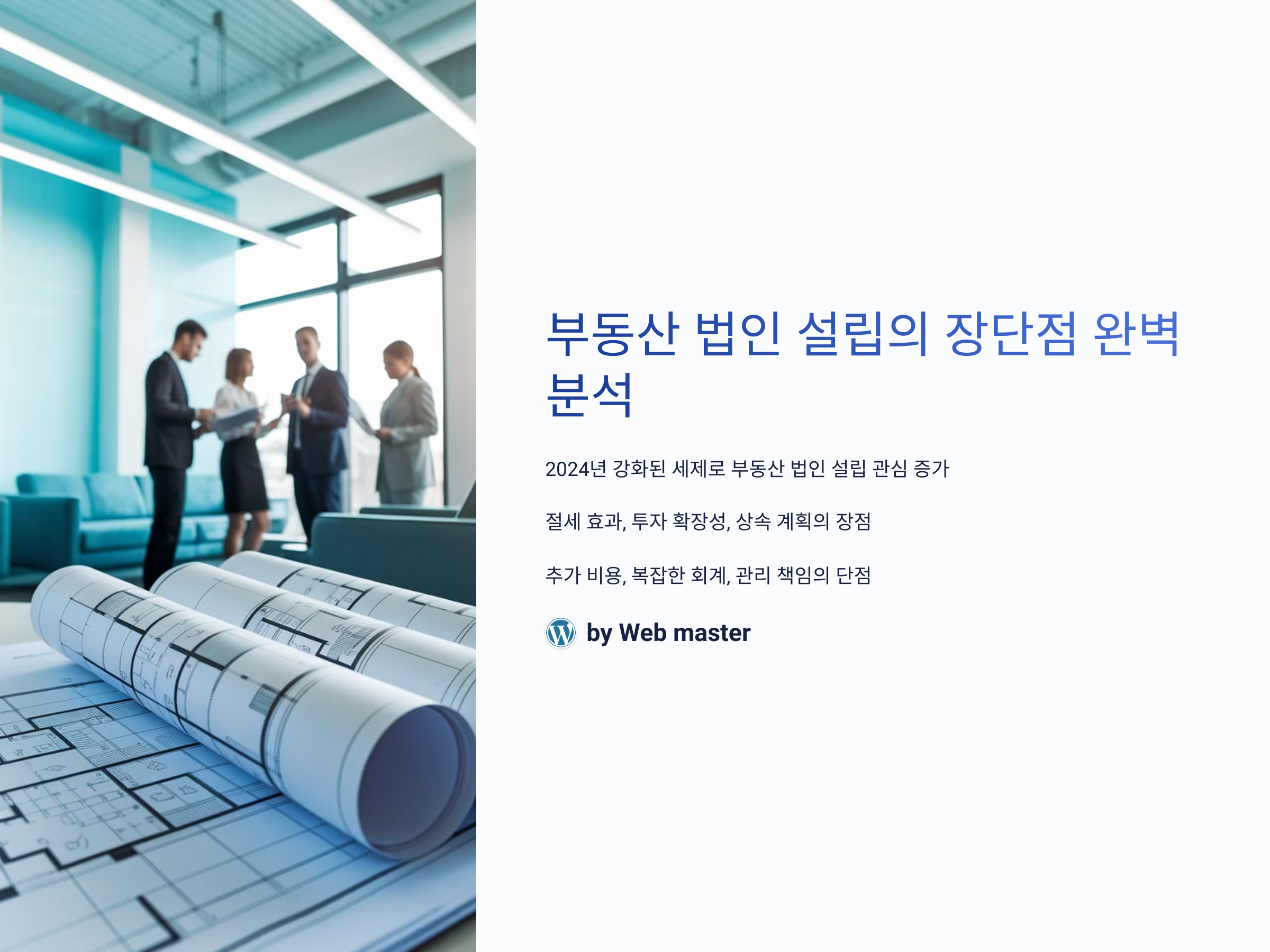 최근 부동산 시장의 규제 강화와 세금 부담 증가로 인해 '부동산 법인 설립'에 대한 관심이 뜨겁습니다. 특히 2024년부터 강화된 종합부동산세, 양도소득세 등 고강도 세제 개편이 시행되면서 법인을 통한 부동산 투자 전략이 주목받고 있습니다. 이에 따라 법인 설립을 고민하는 투자자들은 법인의 장점과 단점을 명확히 이해하는 것이 중요해졌습니다.