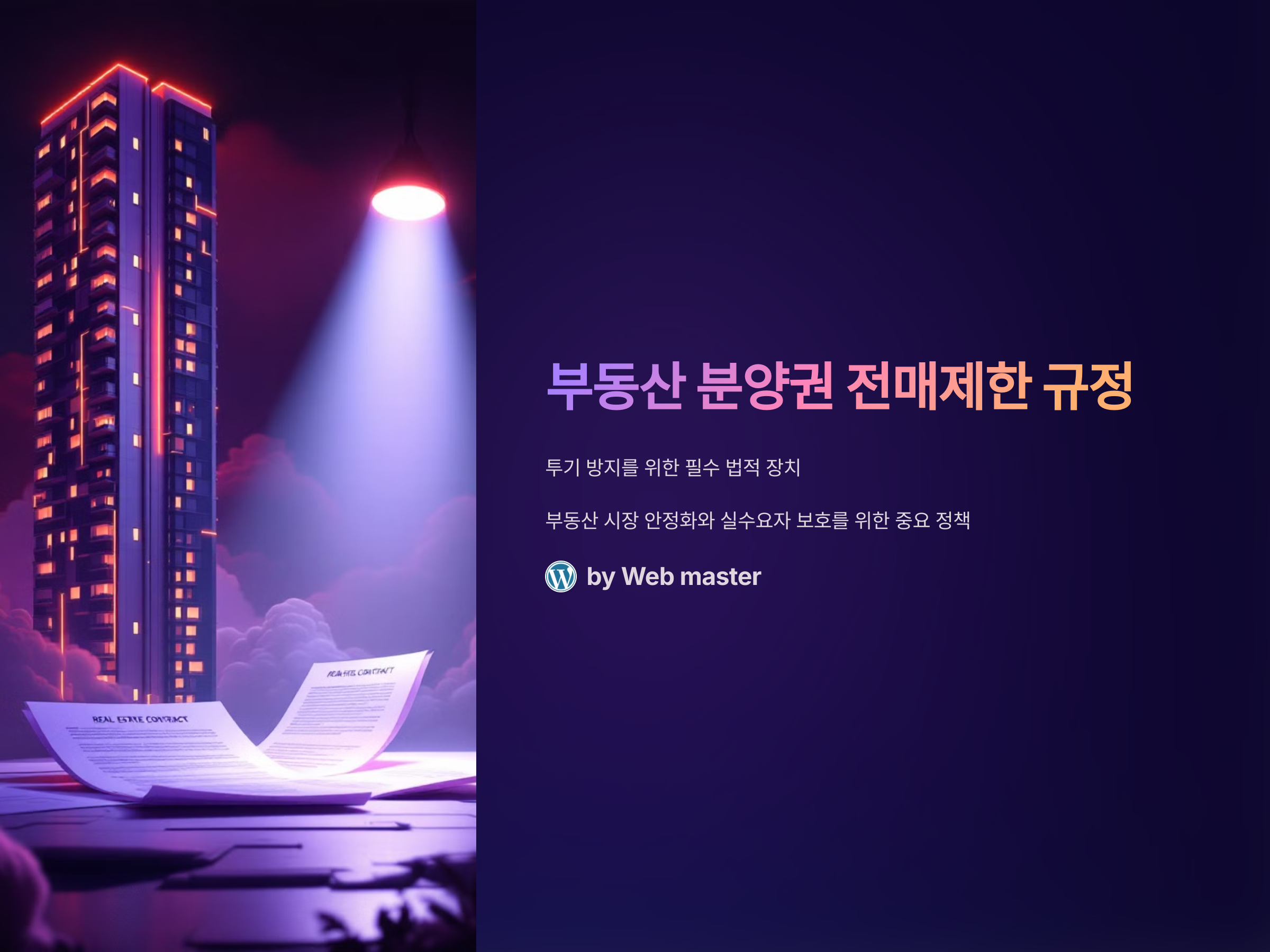 부동산 시장에서 분양권 전매는 주택 공급과 가격 변동에 큰 영향을 미칩니다. 최근 몇 년간 급등한 부동산 가격과 투기적인 분양권 거래로 인해 정부는 분양권 전매제한 규정을 강화해왔습니다. 이 규정은 부동산 시장의 불안정을 방지하고, 실수요자에게 주택을 제공하기 위해 중요한 역할을 합니다. 본 포스팅에서는 부동산 분양권 전매제한 규정에 대한 이해를 돕고, 이 규정이 왜 필요한지, 그리고 향후 시장에 미치는 영향을 살펴보겠습니다.