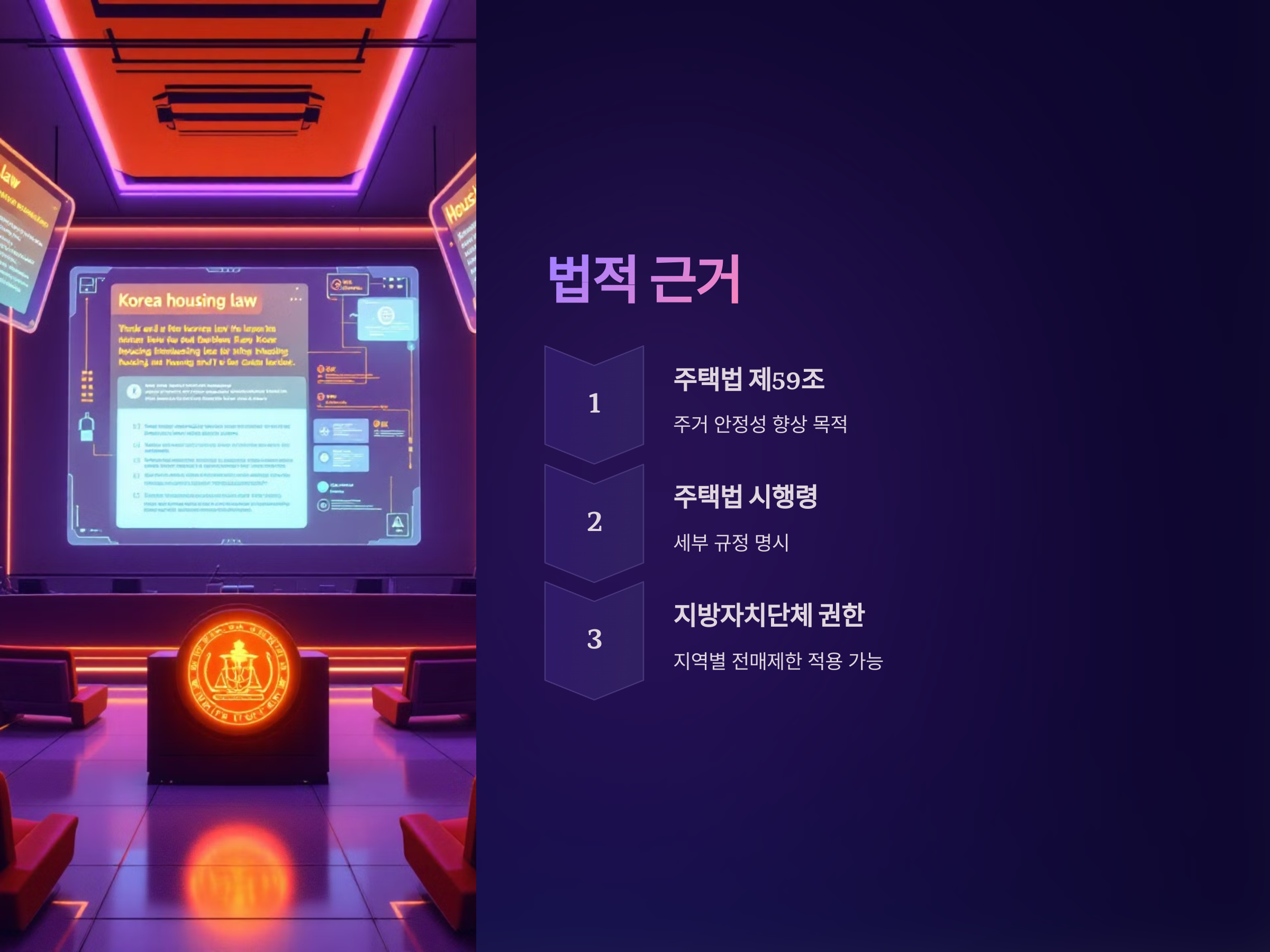 분양권 전매제한 규정은 주택법과 그 하위 법령인 "주택법 시행령"에 근거를 두고 있습니다. 주택법 제59조에 따르면, 분양권 전매제한은 주거 안정성을 높이고 투기적 거래를 억제하기 위해 필요할 경우 적용될 수 있습니다. 또한, 각 지방자치단체나 정부는 특별히 지정된 지역에 대해 분양권 전매를 제한할 수 있는 권한을 가집니다.