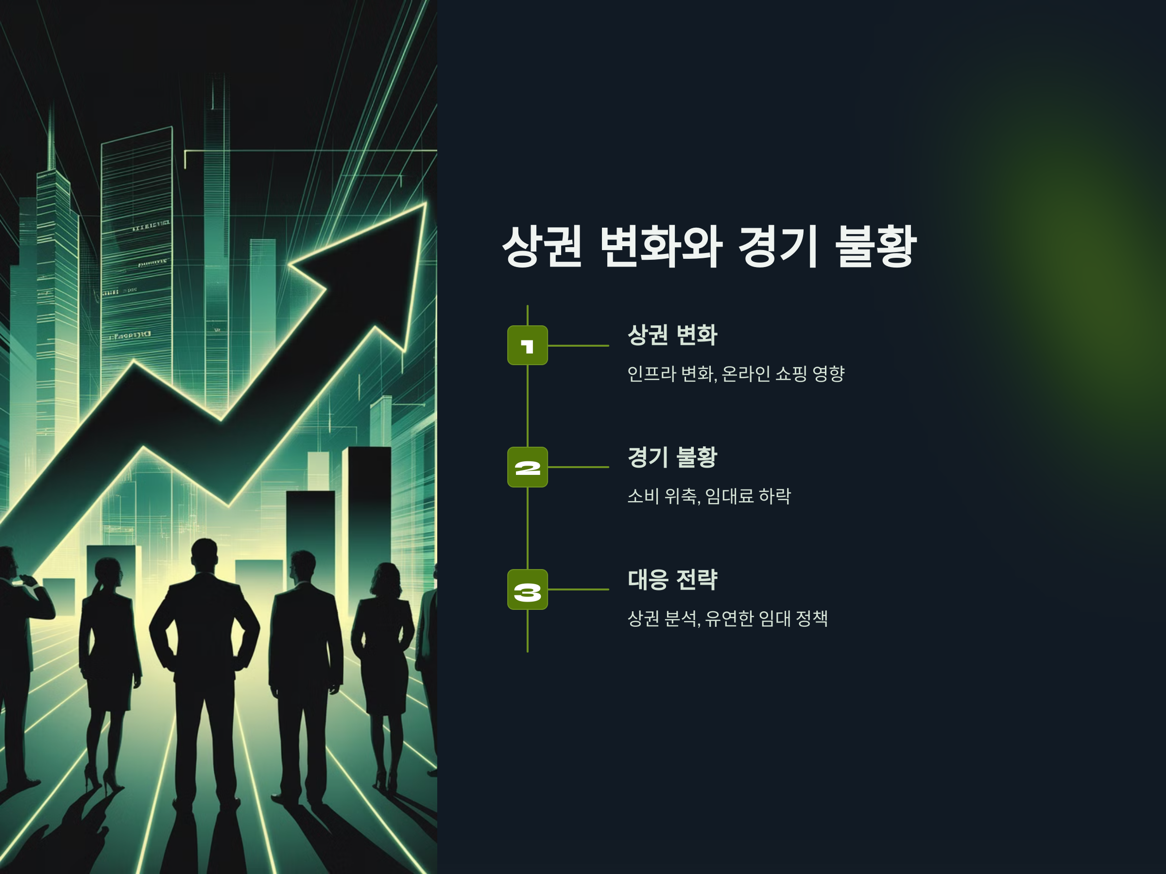 상가 투자에서 또 다른 중요한 리스크는 상권의 변화와 경제 불황입니다. 상가가 위치한 상권이 갑자기 침체되거나 경제 전반이 불황에 빠지면, 상가 임대료가 하락하거나 임차인의 퇴거가 발생할 수 있습니다.
