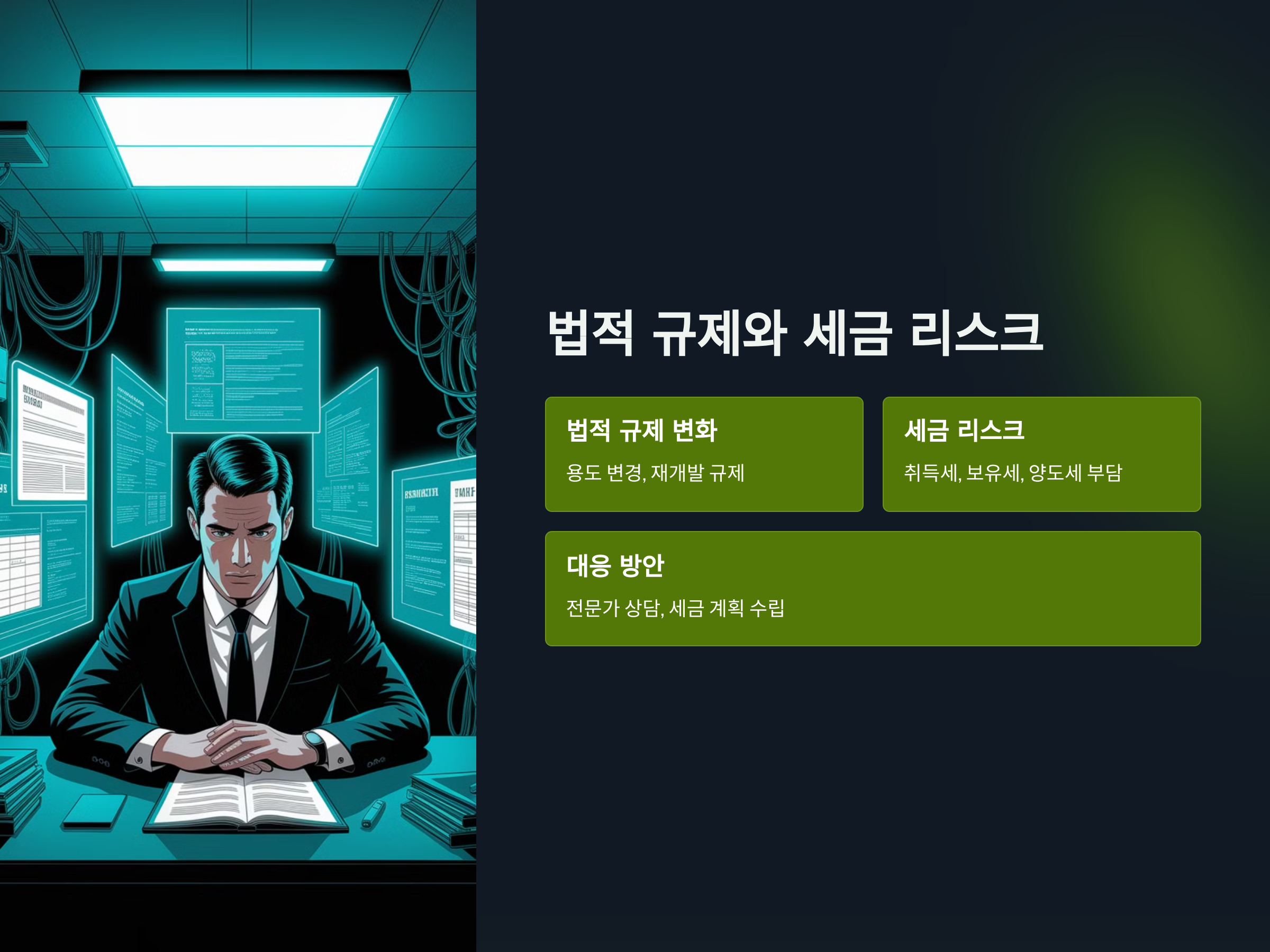부동산 상가 투자 시 법적 규제와 세금도 중요한 리스크입니다. 특히, 정부의 규제나 정책 변화는 상가의 수익성에 큰 영향을 미칠 수 있습니다.