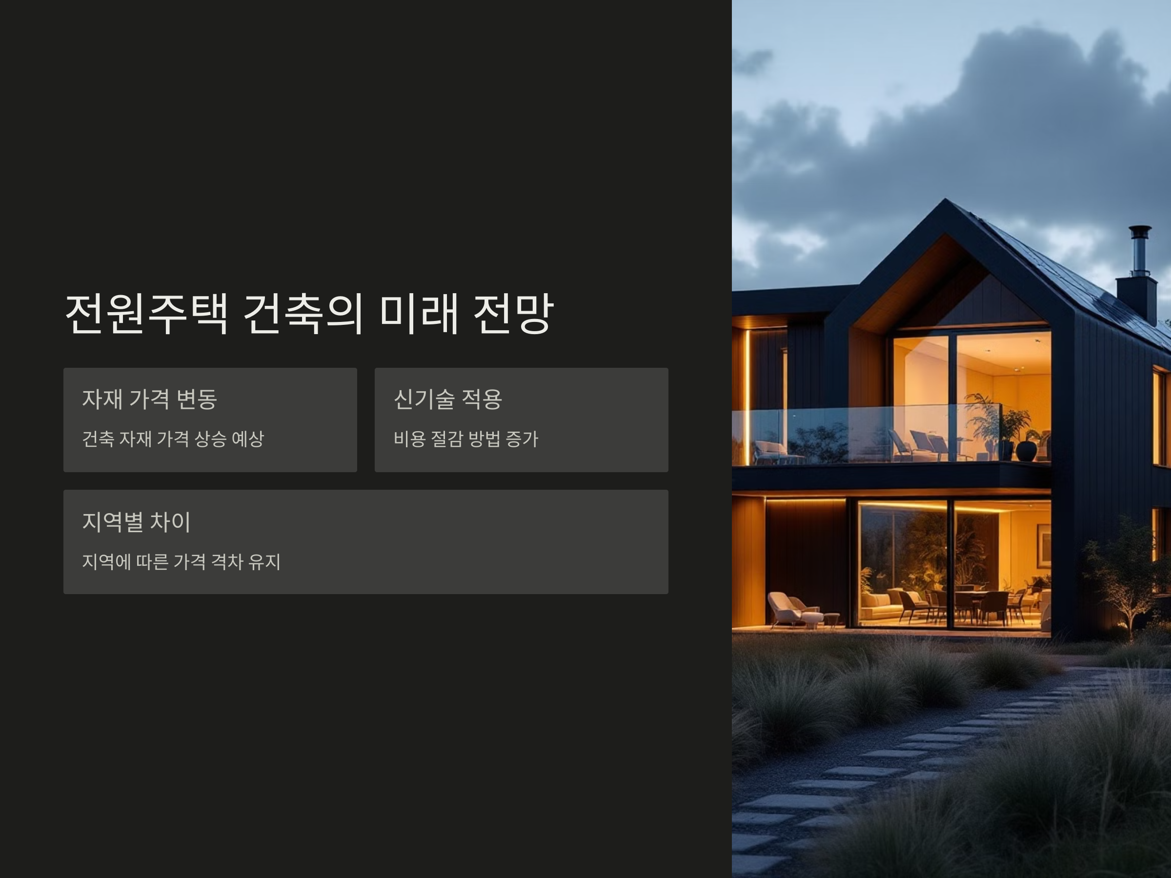 전원주택 건축비용의 주요 요소