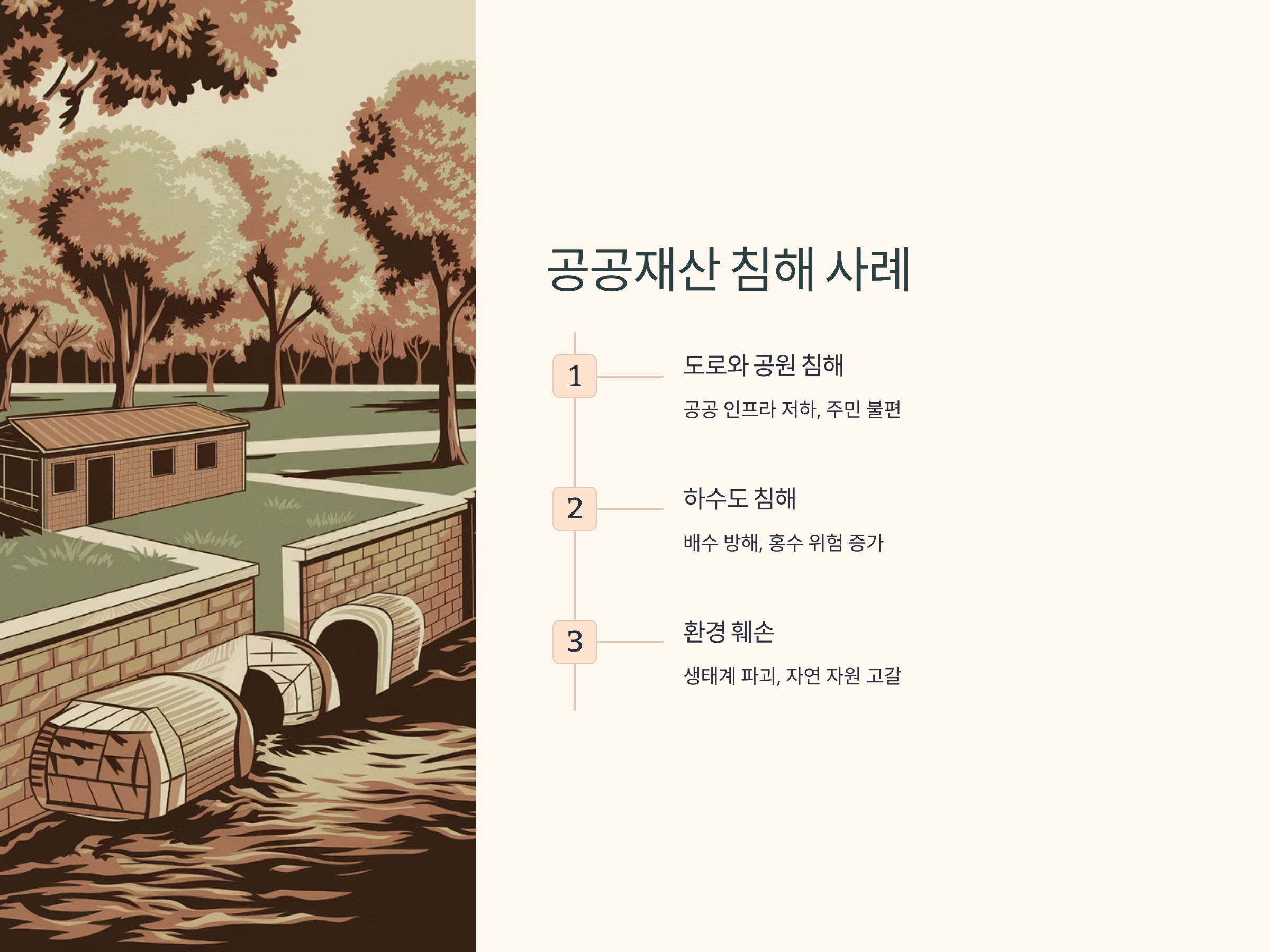 불법건축물은 단순한 건축법 위반을 넘어서 사회적, 환경적, 경제적 문제를 일으킬 수 있는 심각한 사안입니다. 특히 공공재산을 침해하는 경우, 그 피해는 지역사회와 시민들에게 직접적인 영향을 미칩니다. 이를 방지하기 위해서는 시민들의 의식 제고와 정부의 강력한 대응이 필요합니다.