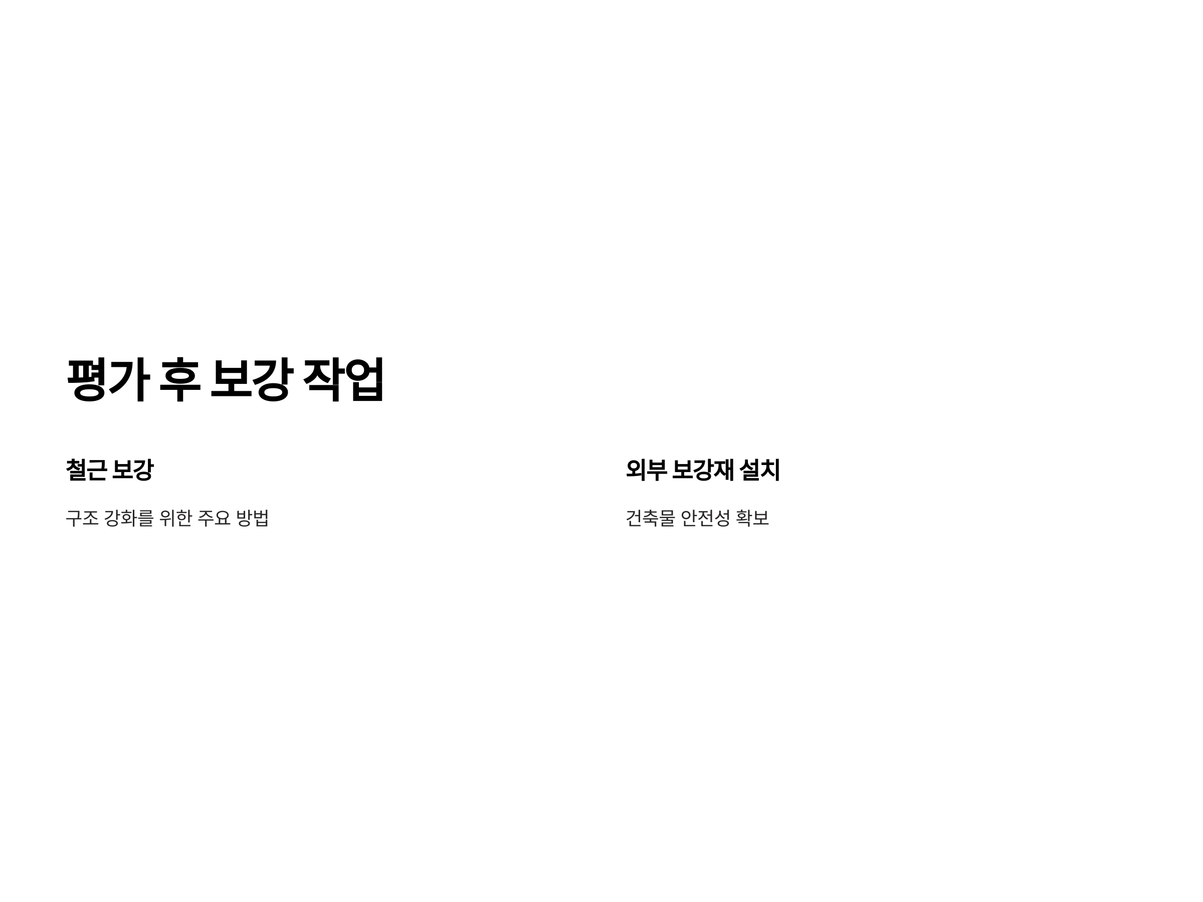 - 개선 작업 제시: 구조적 결함이 있을 경우, 개선 방법과 비용을 제시합니다.