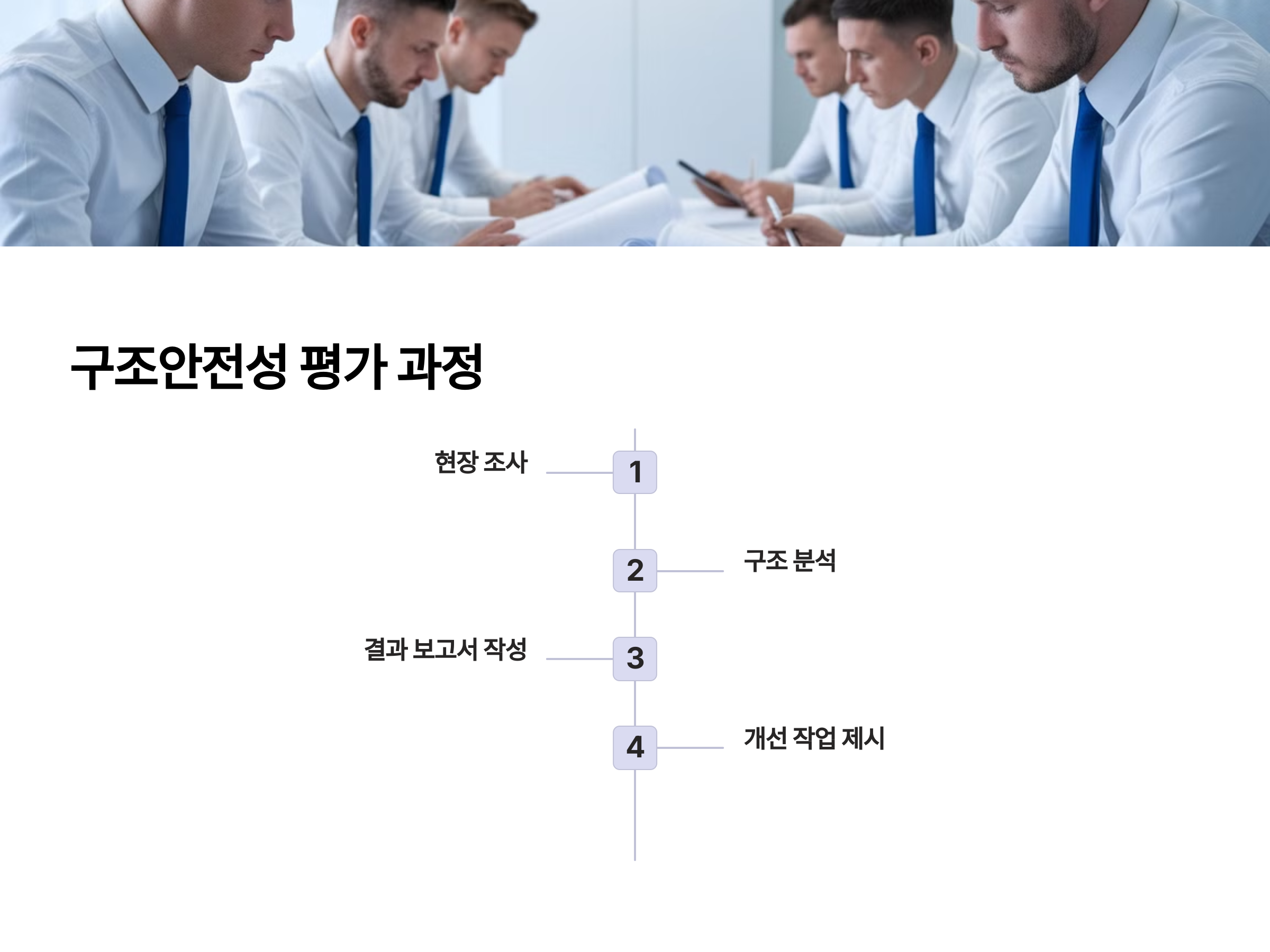구조안전성 평가를 받기 위해서는 전문가의 도움이 필요합니다. 보통 구조안전성 평가 과정은 다음과 같이 진행됩니다: