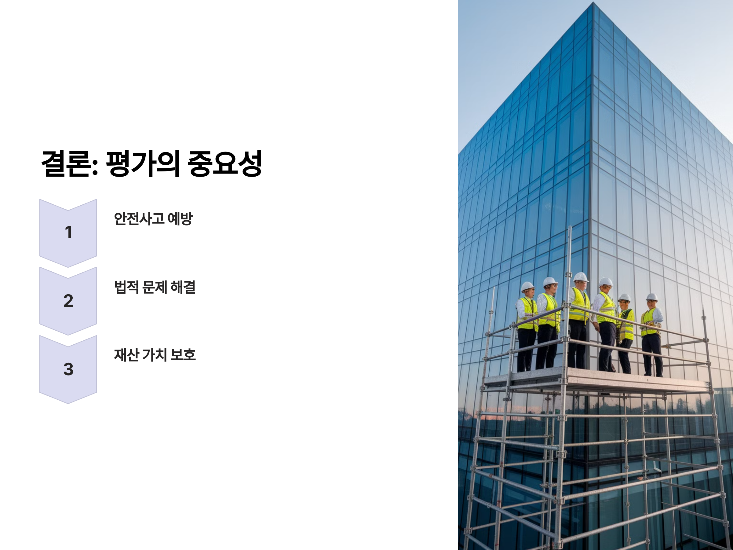 - 결과 보고서 작성: 평가 후, 결과 보고서를 작성하여 해당 건축물의 안전성을 판별합니다.