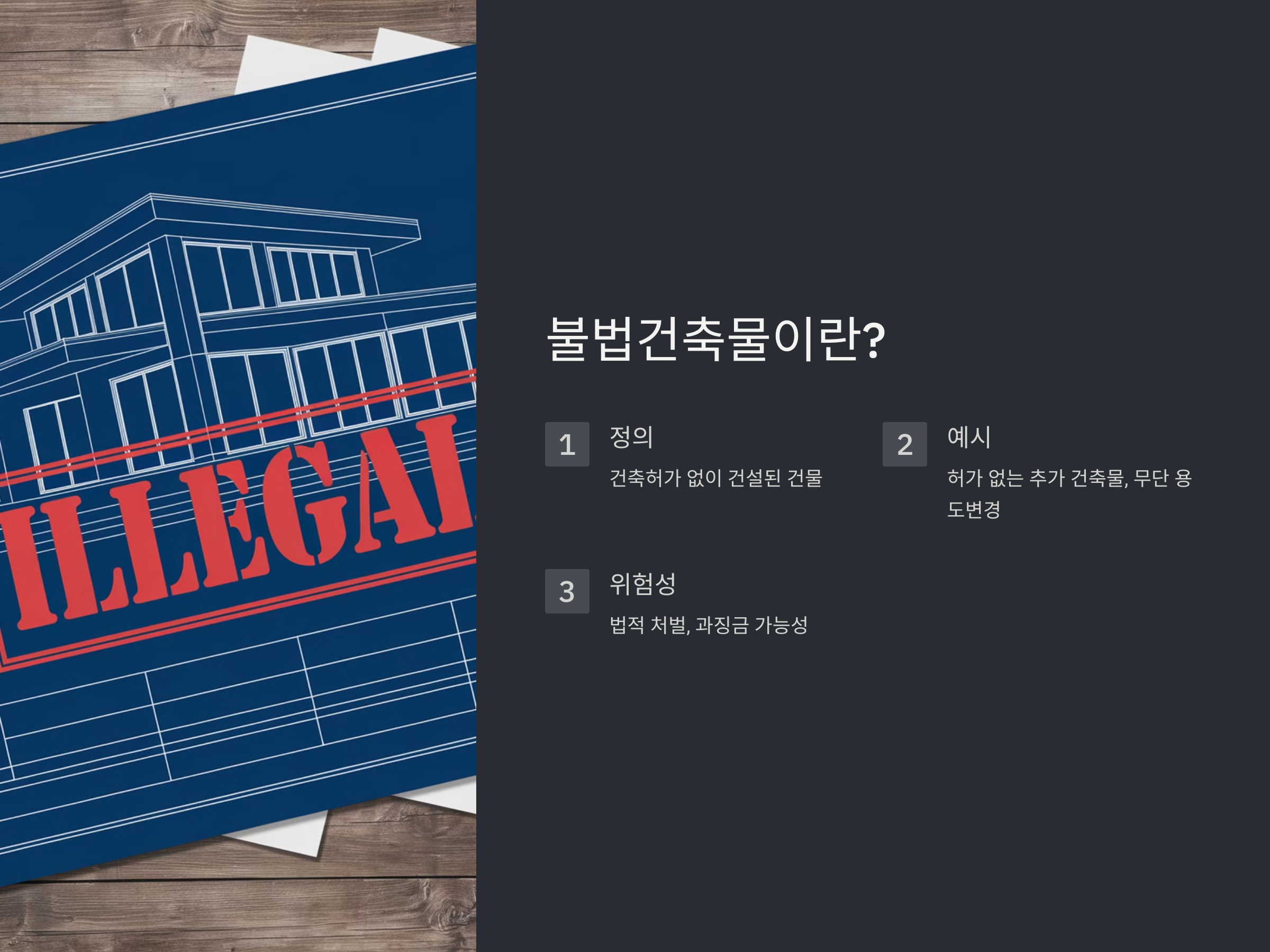 불법건축물은 간단히 말해, 건축허가 없이 건설된 건물이나, 설계도면과 실제 건축물의 차이가 있는 건축물입니다. 예를 들어, 주택을 지을 때 허가받지 않은 추가 건축물이나, 용도변경을 거치지 않은 상업용 건축물이 여기에 해당됩니다. 이런 건축물은 대부분의 경우 법적으로 불안정한 위치에 놓이게 되며, 향후 처벌이나 과징금 등 법적 책임이 따를 수 있습니다. 그렇다면, 왜 이런 불법건축물이 부동산 가치에 영향을 미칠까요?