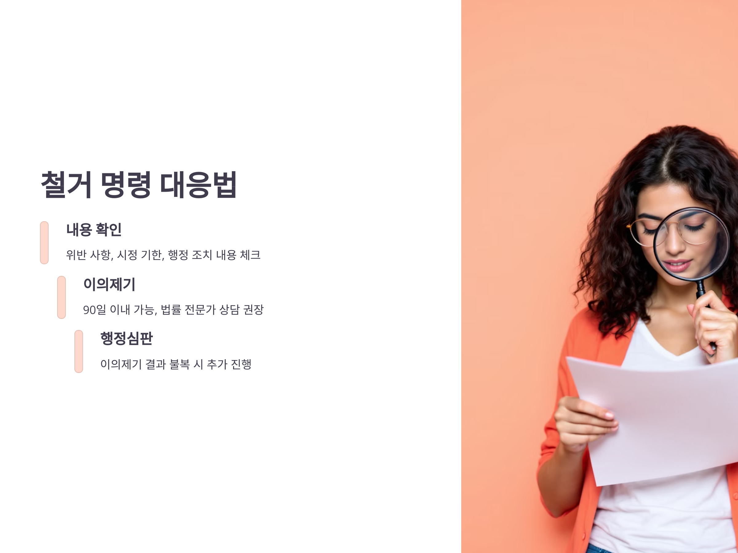 철거 명령을 받았다면 먼저 문서의 내용을 정확히 확인해야 합니다. 주요 체크 포인트는 다음과 같습니다.
